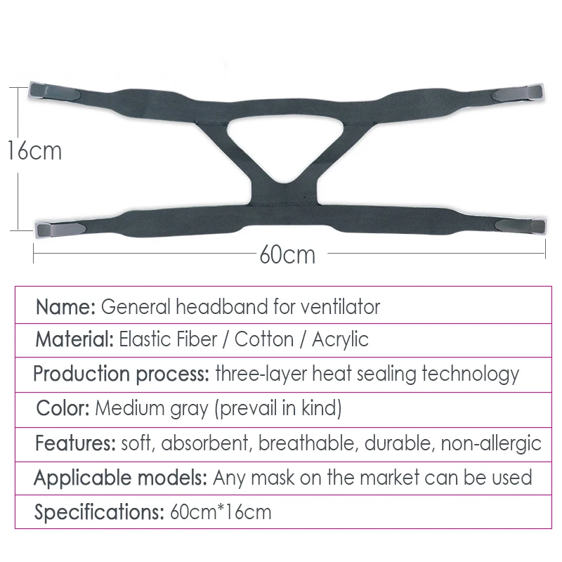 Голубые и серые эластичные волоконные головные уборы для масок CPAP в медицинской маске для сна для лечения храпа и апноэ с поясом