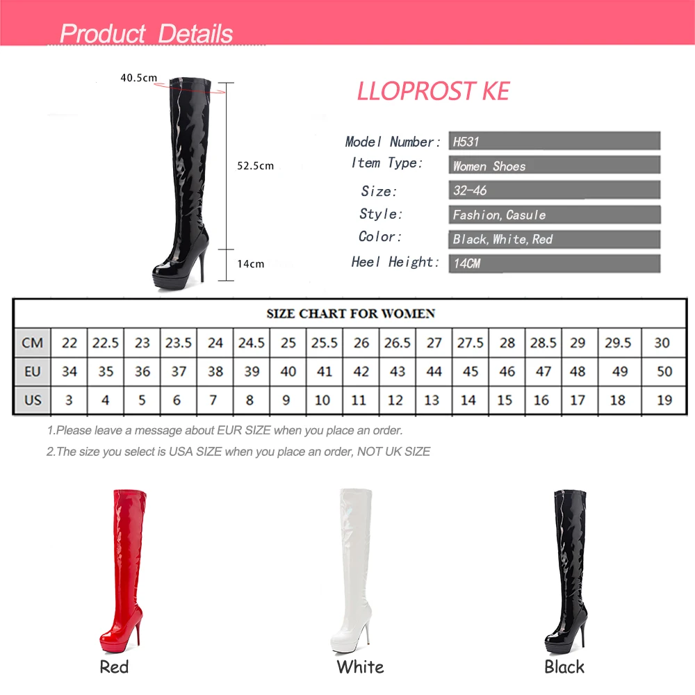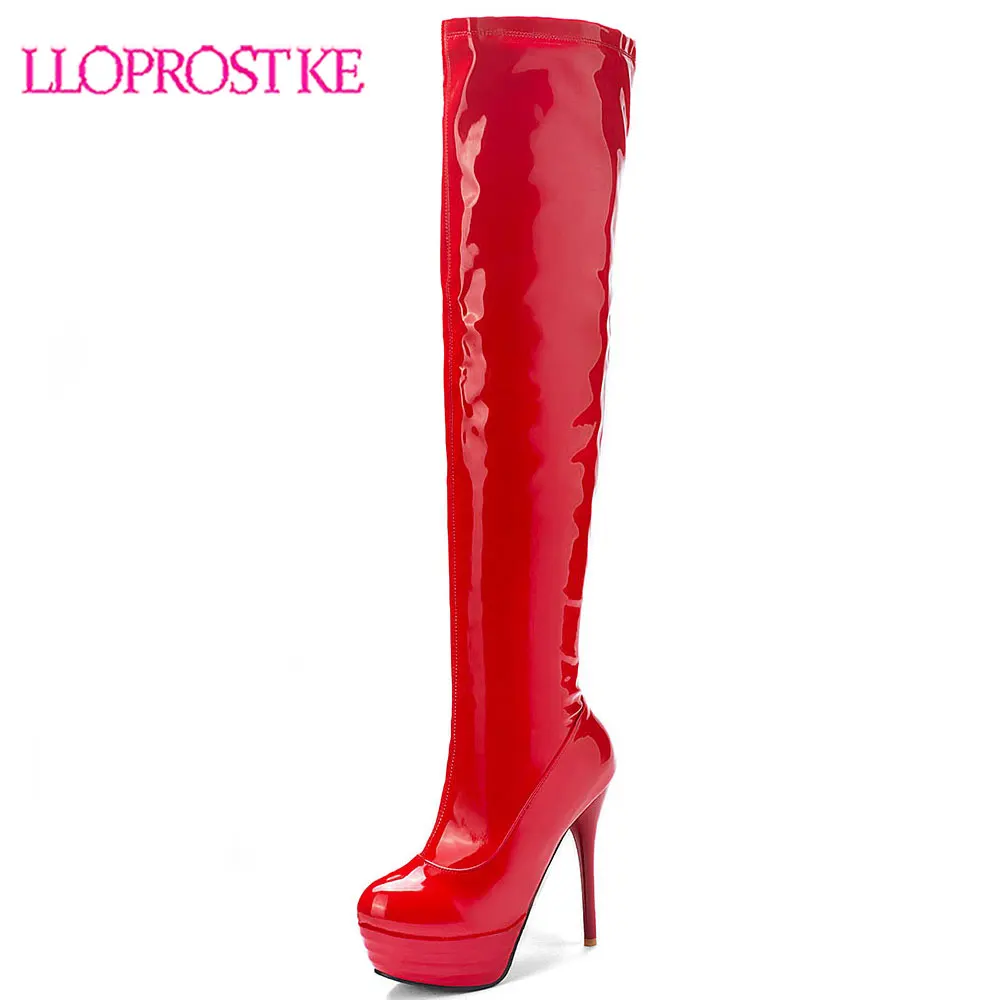 Lloprost keЖенская пикантная обувь на платформе, большие размеры 32-46, женские сапоги выше колена на тонком высоком каблуке, H531, 2019