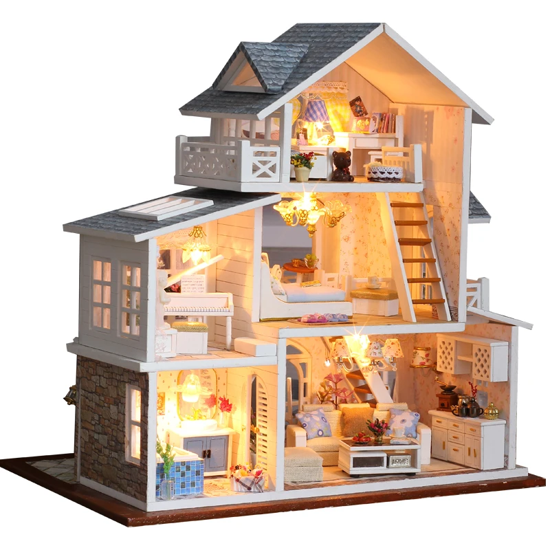 CUTEBEE DIY кукольный домик деревянные кукольные домики Миниатюрный Кукольный дом набор мебели Каса музыка светодиодные игрушки для детей подарок на день рождения K18