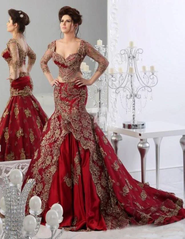 Традиционные свадебные платья из двух предметов, юбка-годе, конфета, женское платье от кутюр, бордовые Свадебные платья с рукавами