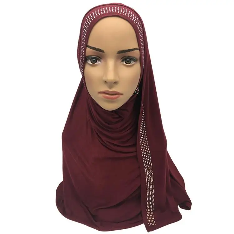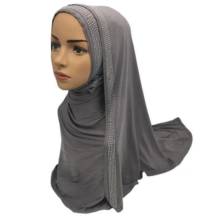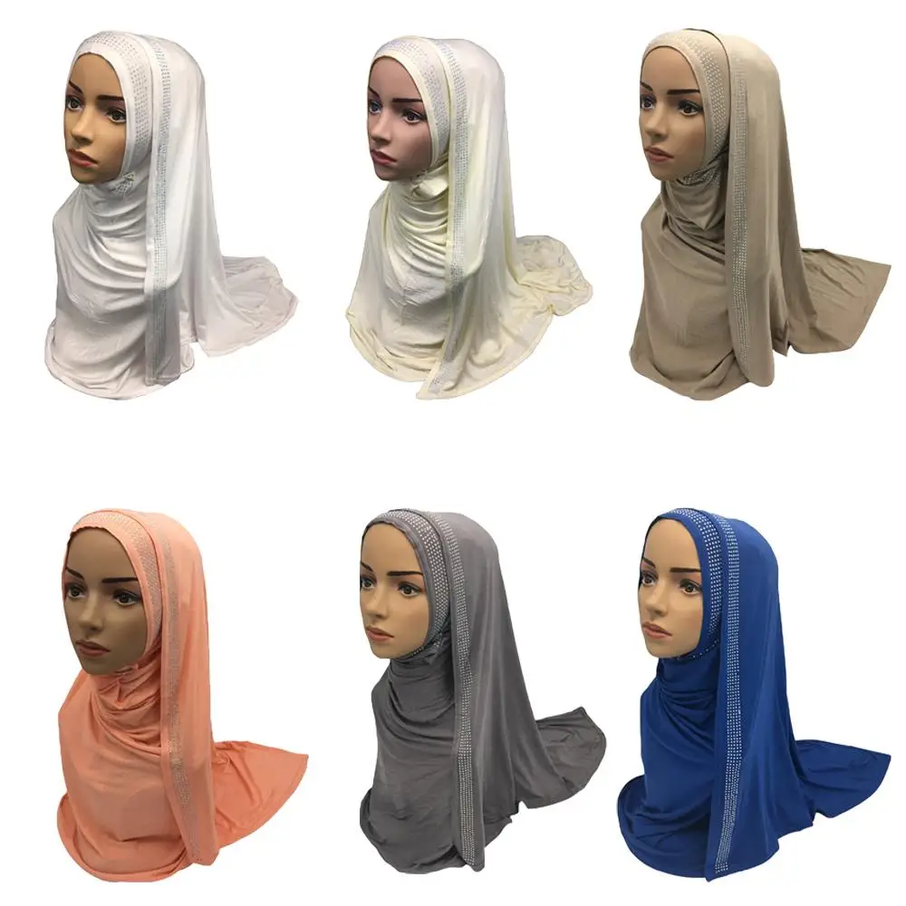 Мусульманский женский длинный шарф шаль из модала хлопка Стразы шарфы головной платок мусульманский арабский тюрбан головной платок Средний Восток 75*170 см