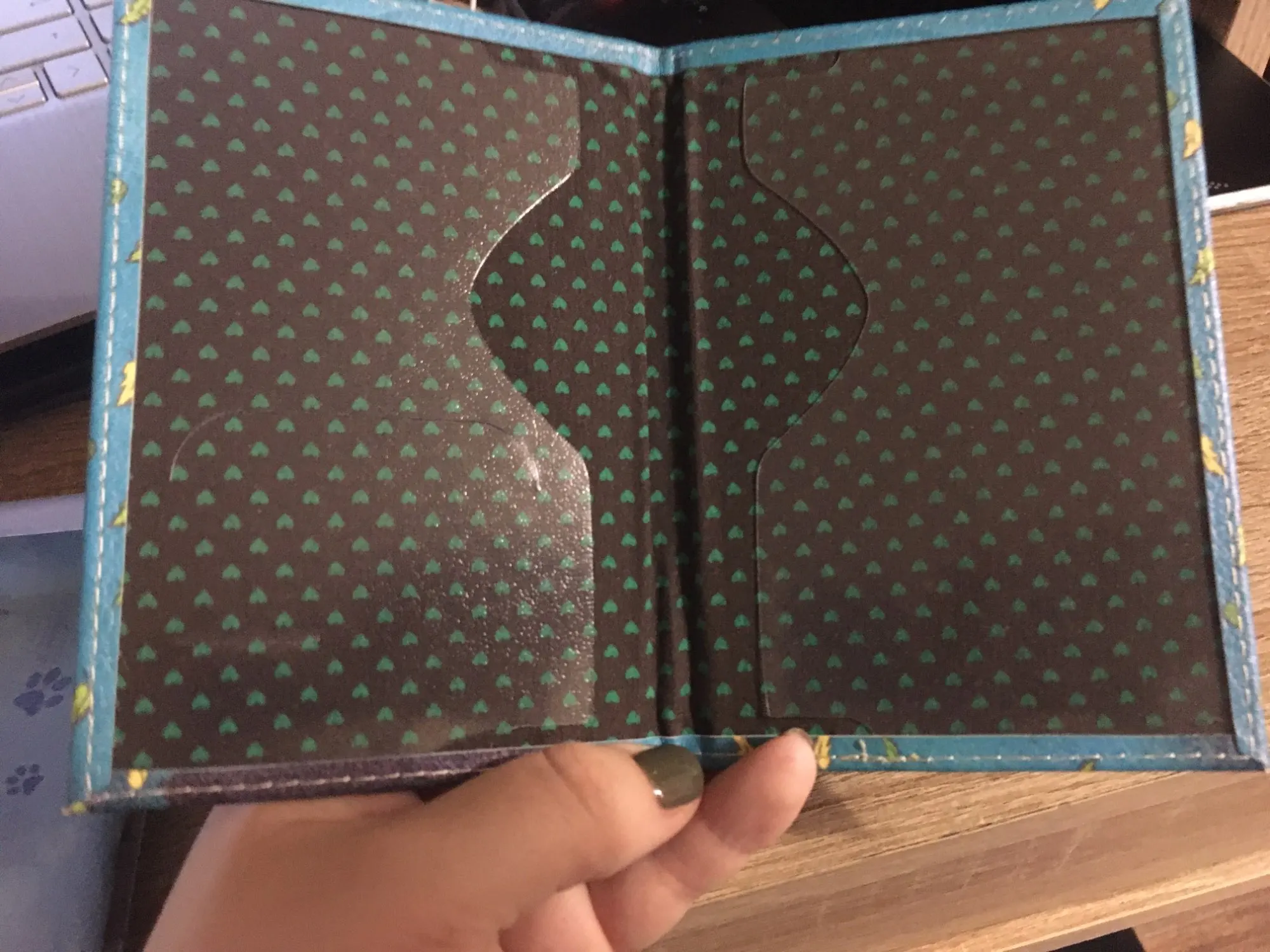 Very nice case. Мне очень нравится материал и цвета. Он имеет боковые стороны внутри, чтобы положить карты. I Wanted to use This Case for My Bear's veterinary cartill but It's Small for that. Я буду использовать его как чехол для паспорта, который предназначен для того, что он действительно был разработан.