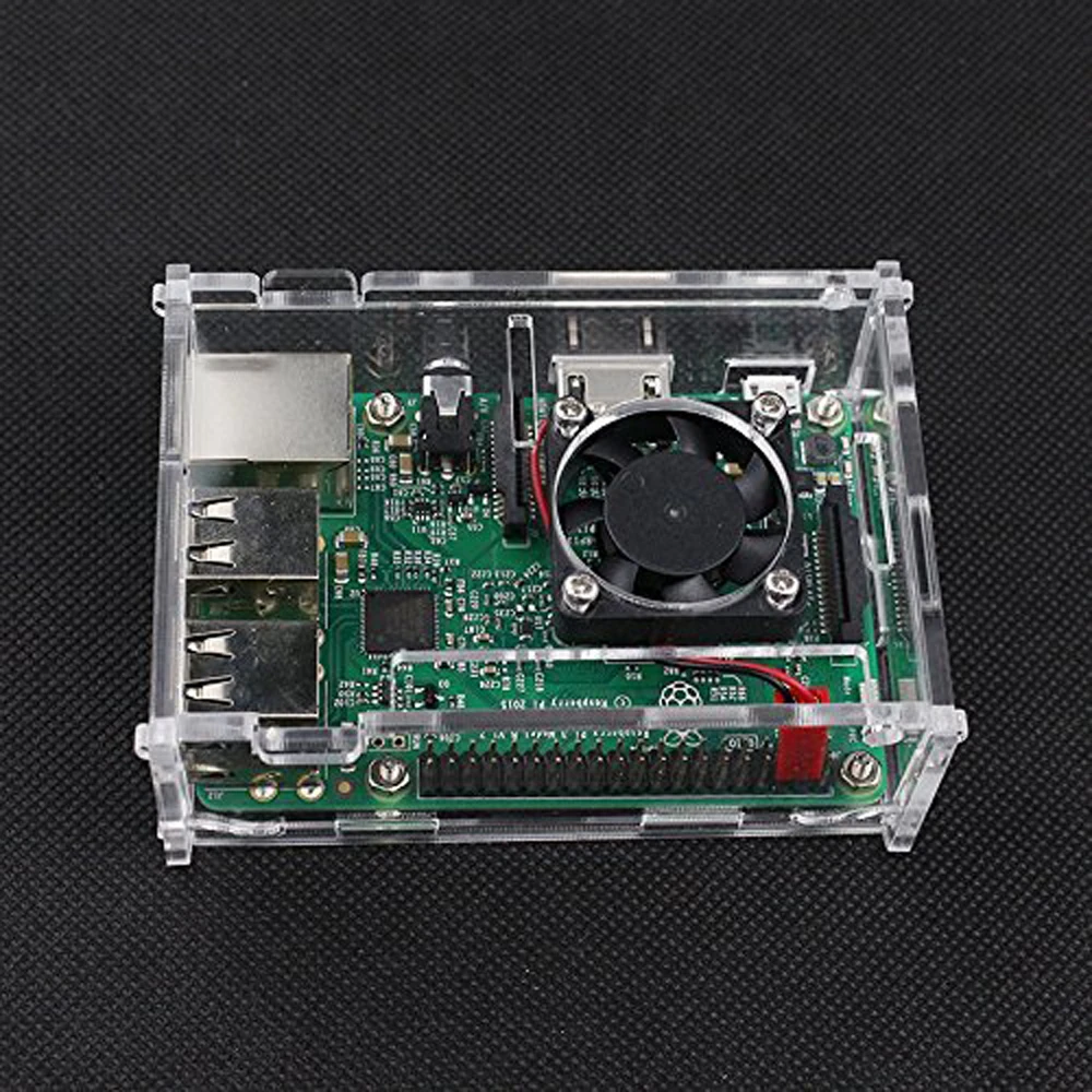Pi 3 B + чехол с вентилятором и радиаторами для Rapsberry, совместимый с Pi 3 Model B + Pi 3 Model Bpi 3 Pi 2 Pi 2b, прозрачный
