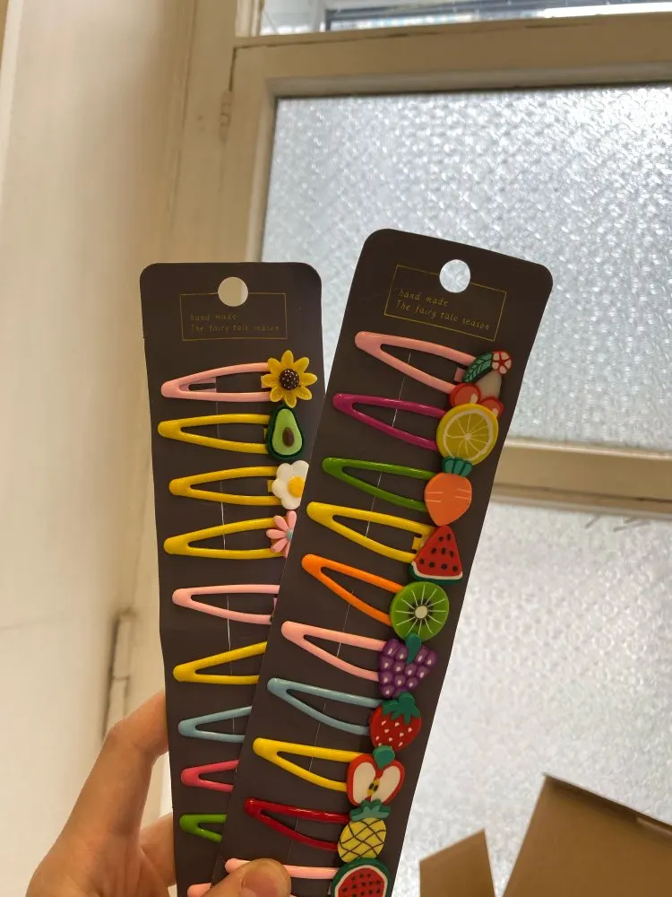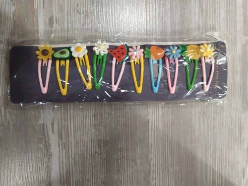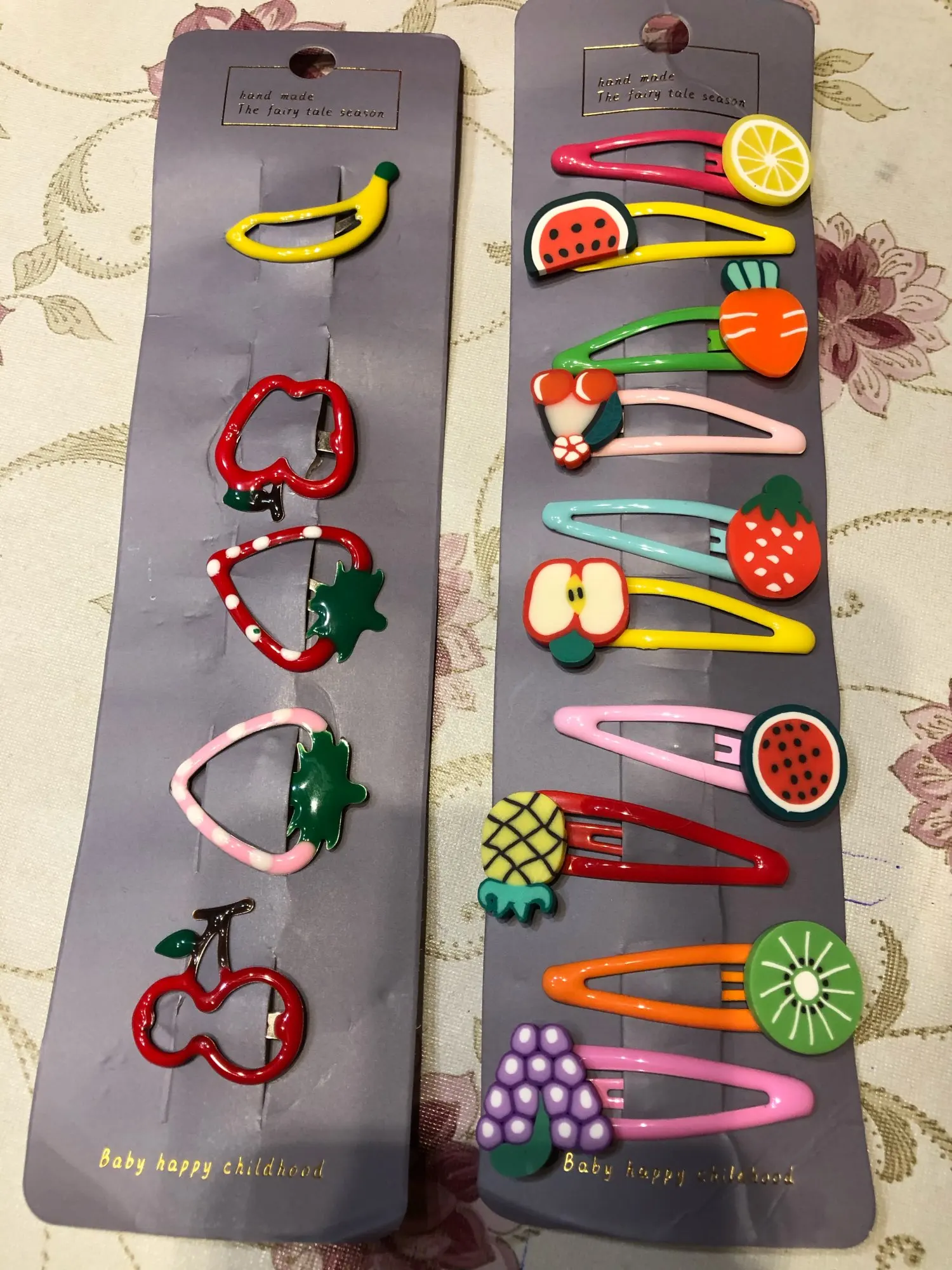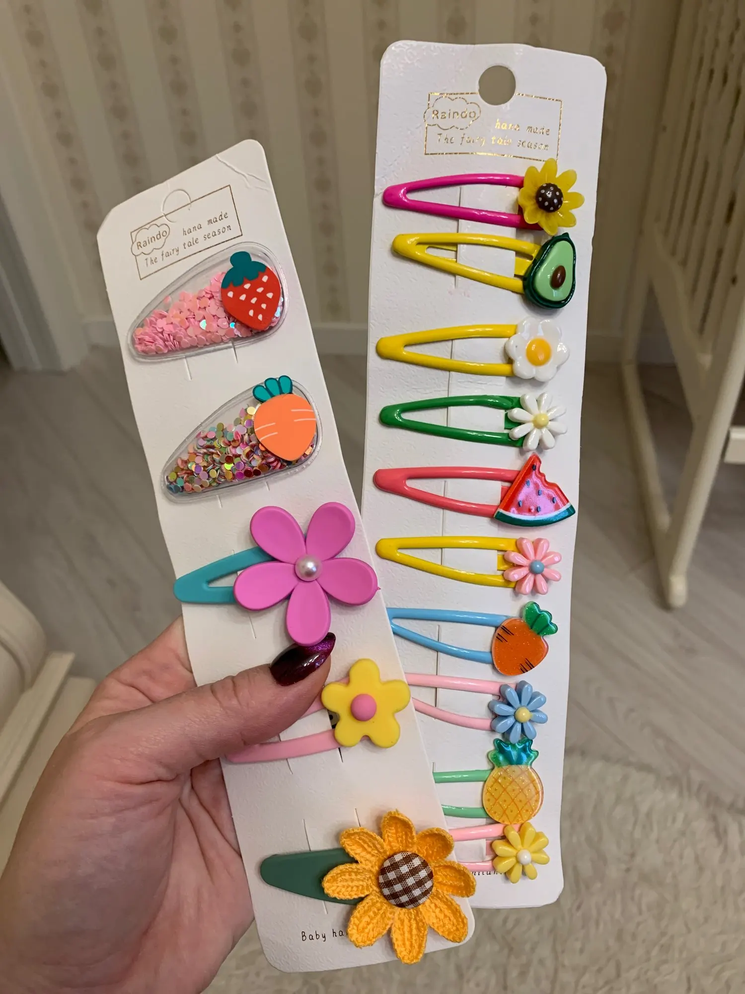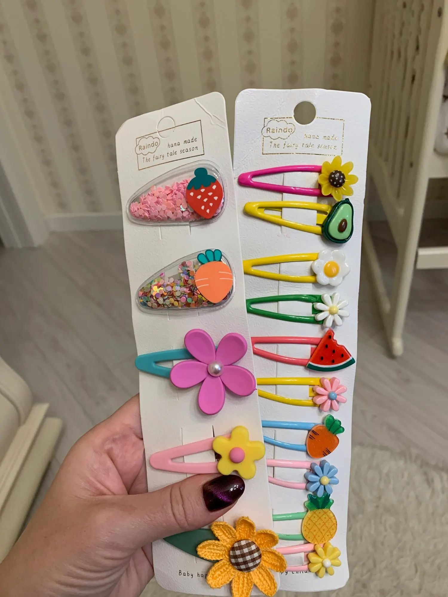 5 пар по 2шт.(10заколок).Соответствуют описанию. Яркие, красивые, милые. Прорезиненые элементы декора.