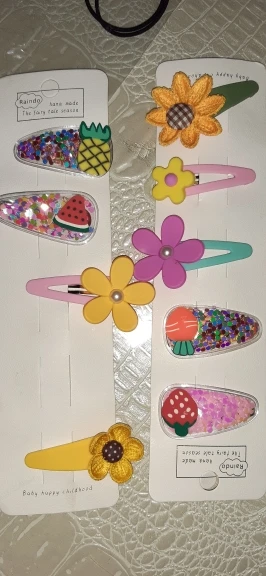 Рассчитывала что будут яркие как на фото а получила не совсем те цвета,продавец положил в подарок резиночку,заколки большие для очень маленькой девочки не подойдут.