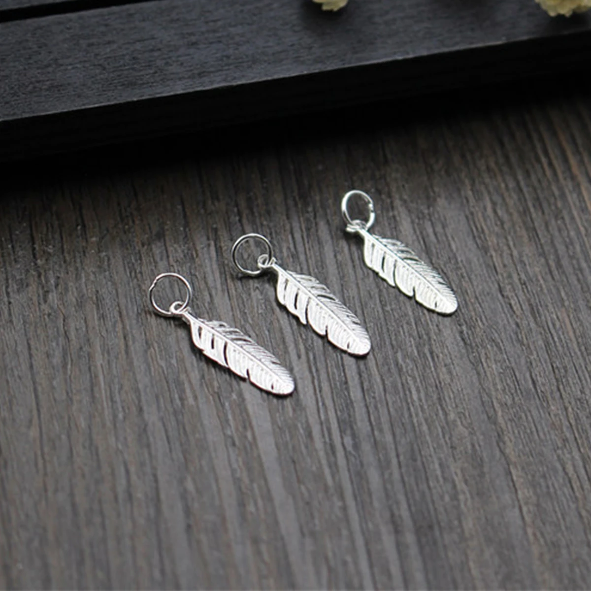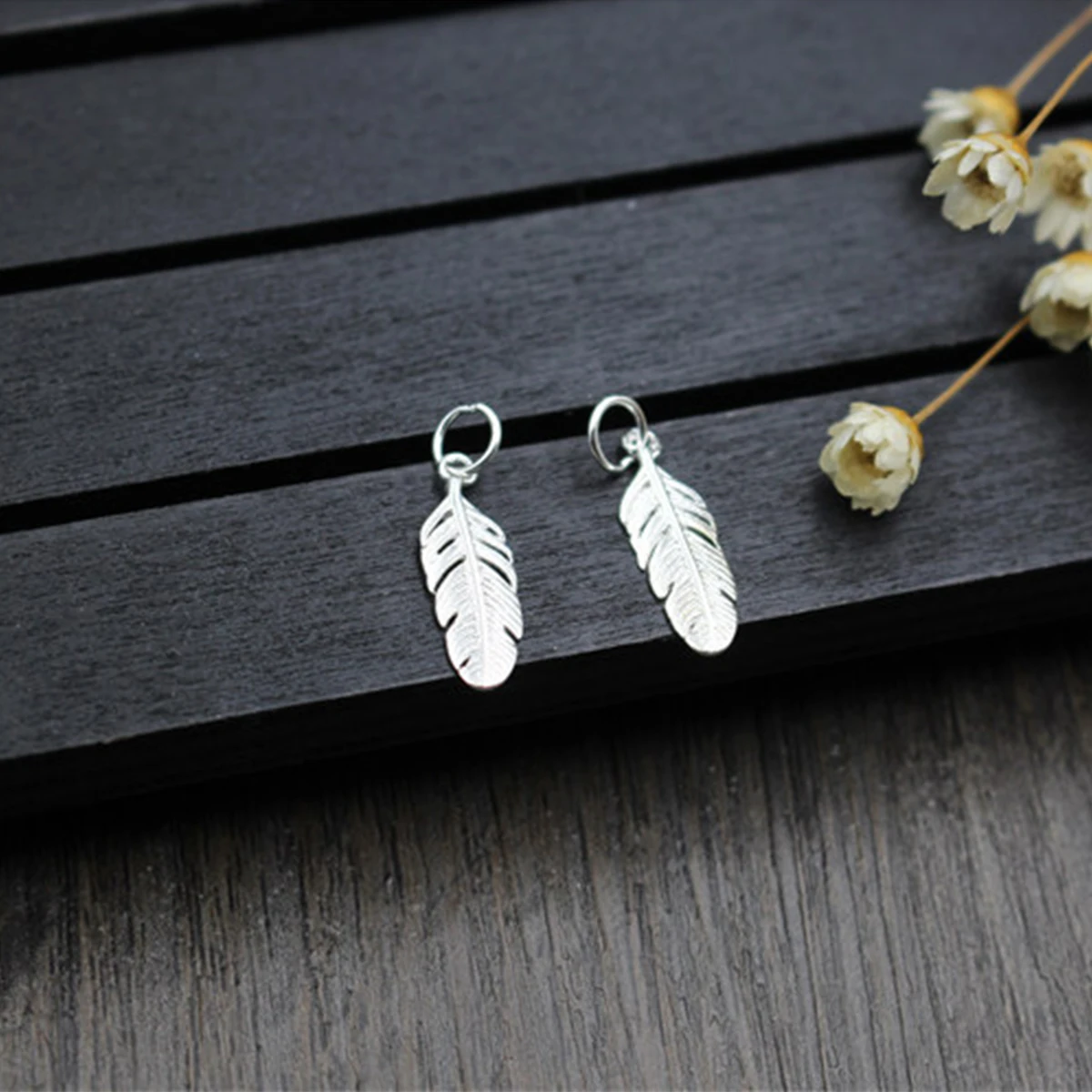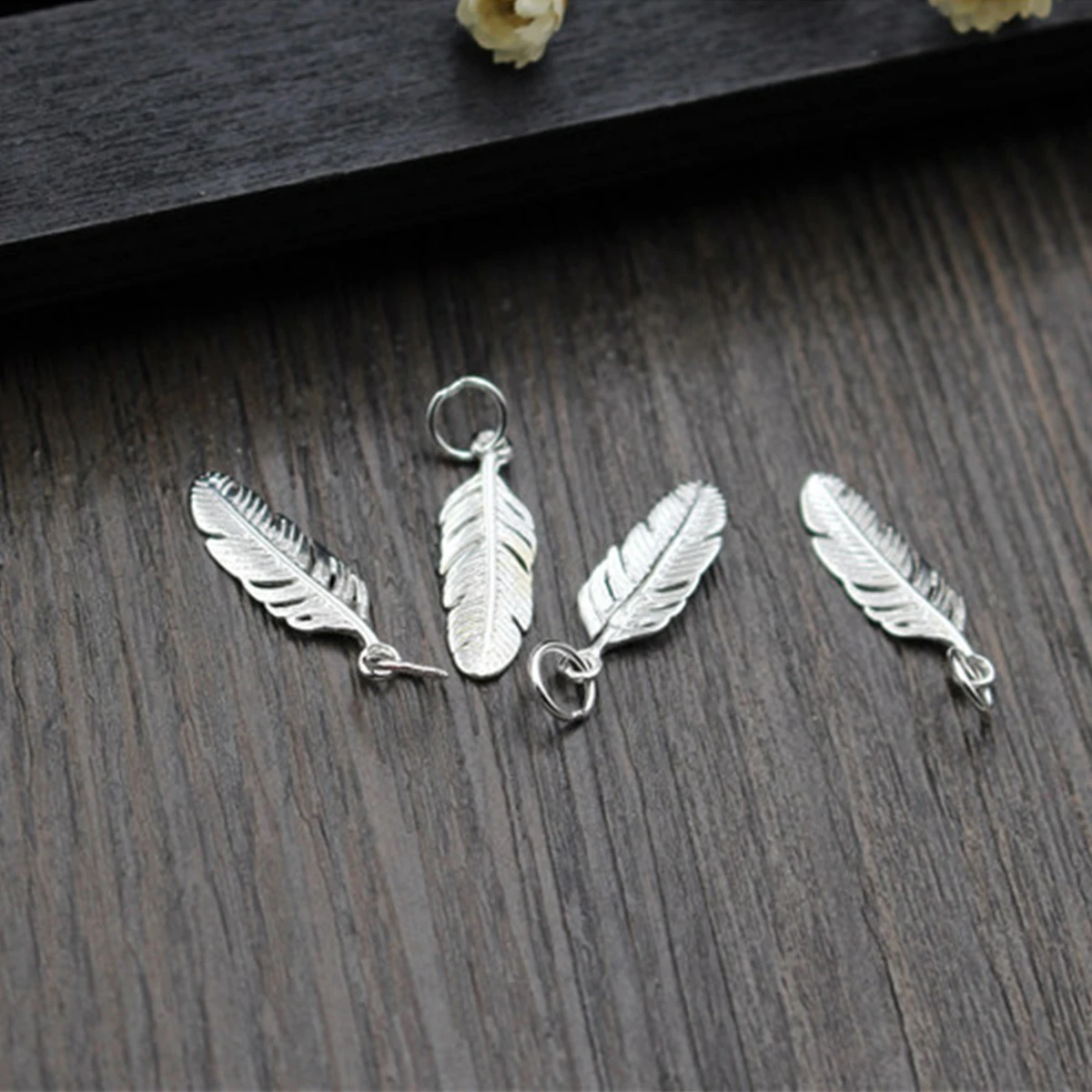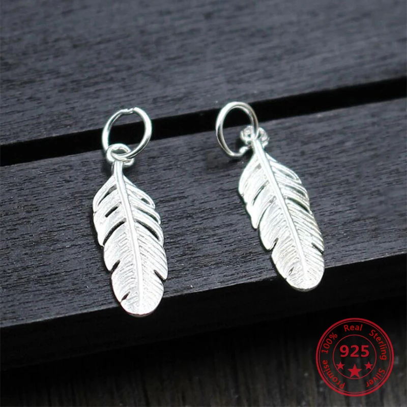 Поделки из перьев 2 шт., подвески из серебра 925 пробы для рукоделия, ожерелье, браслет, Подвески ручной работы Feath, аксессуары для изготовления ювелирных изделий