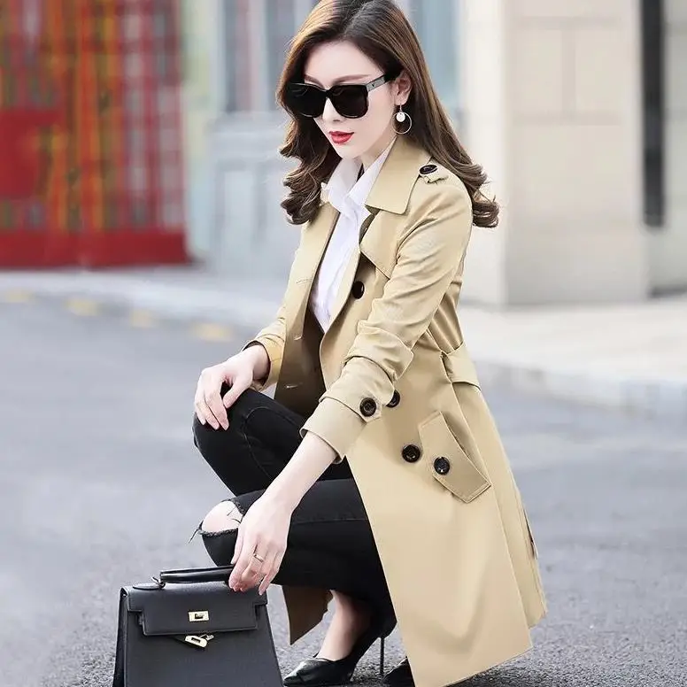 Тонкий 6XL Новый весенний осенний женский корейский ветровка женский большой размер длинный секционный шикарный тренчкот на пуговицах в британском стиле