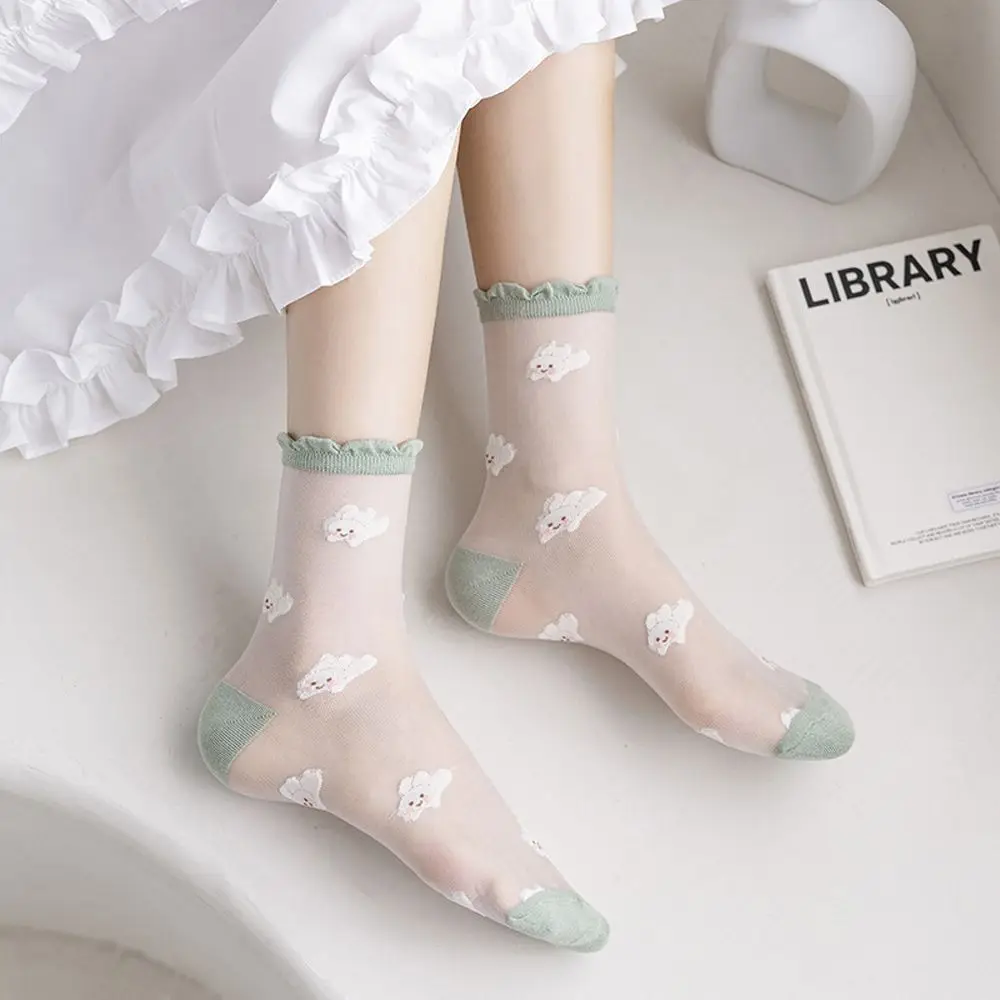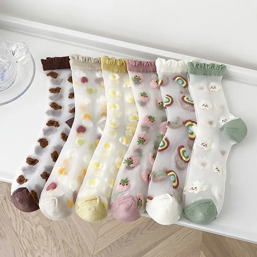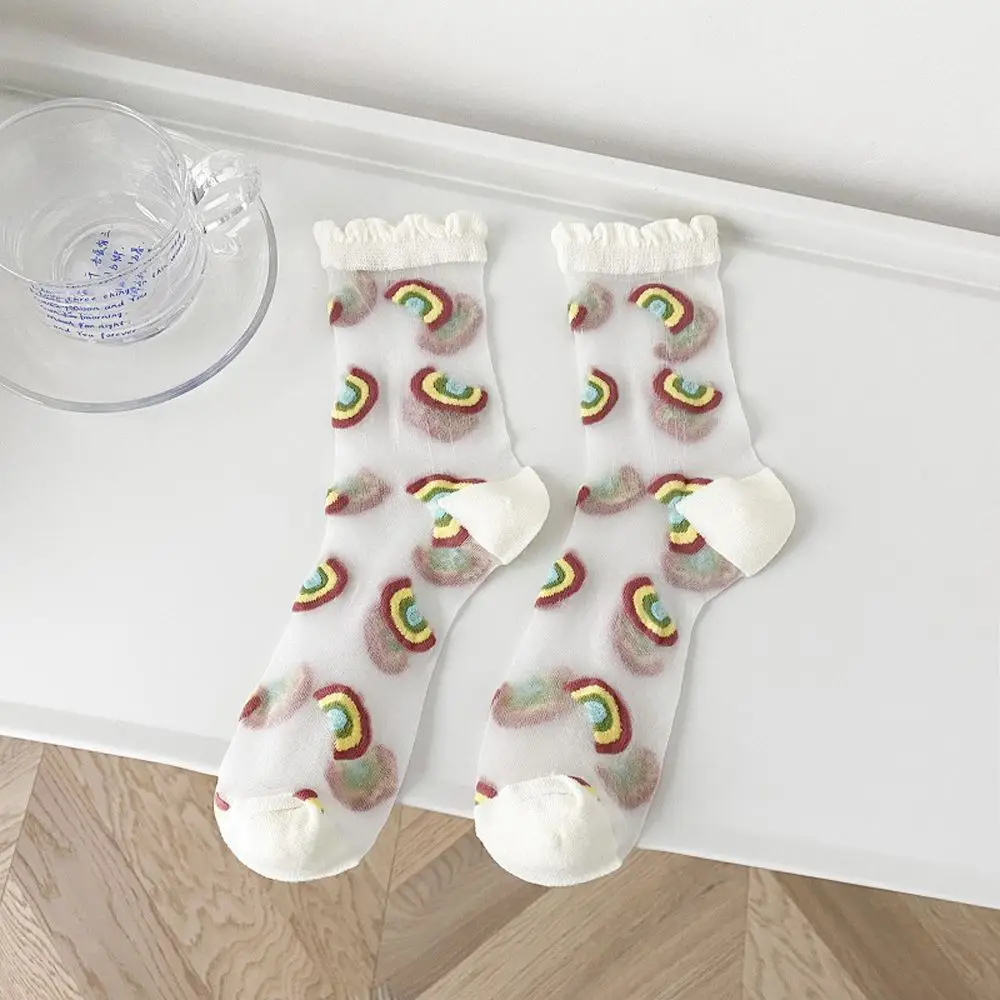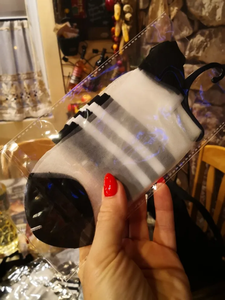 Носки женские, летние, ультратонкие, прозрачные, полосатые, со стразами, Шелковый носок
