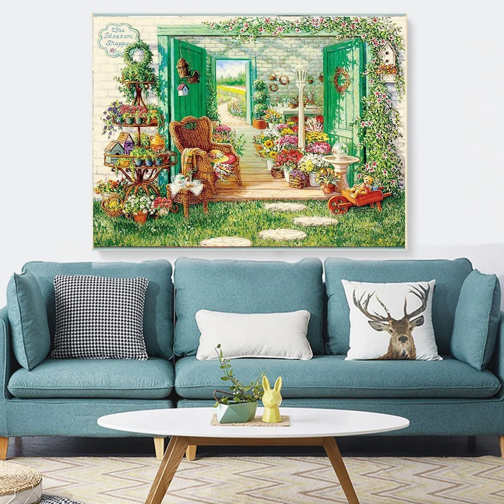 Алмазная вышивка HUACAN, вышитая бисером природа 5d алмазная живопись камни в форме ромба пейзаж мозаичные камни картина дом Декор