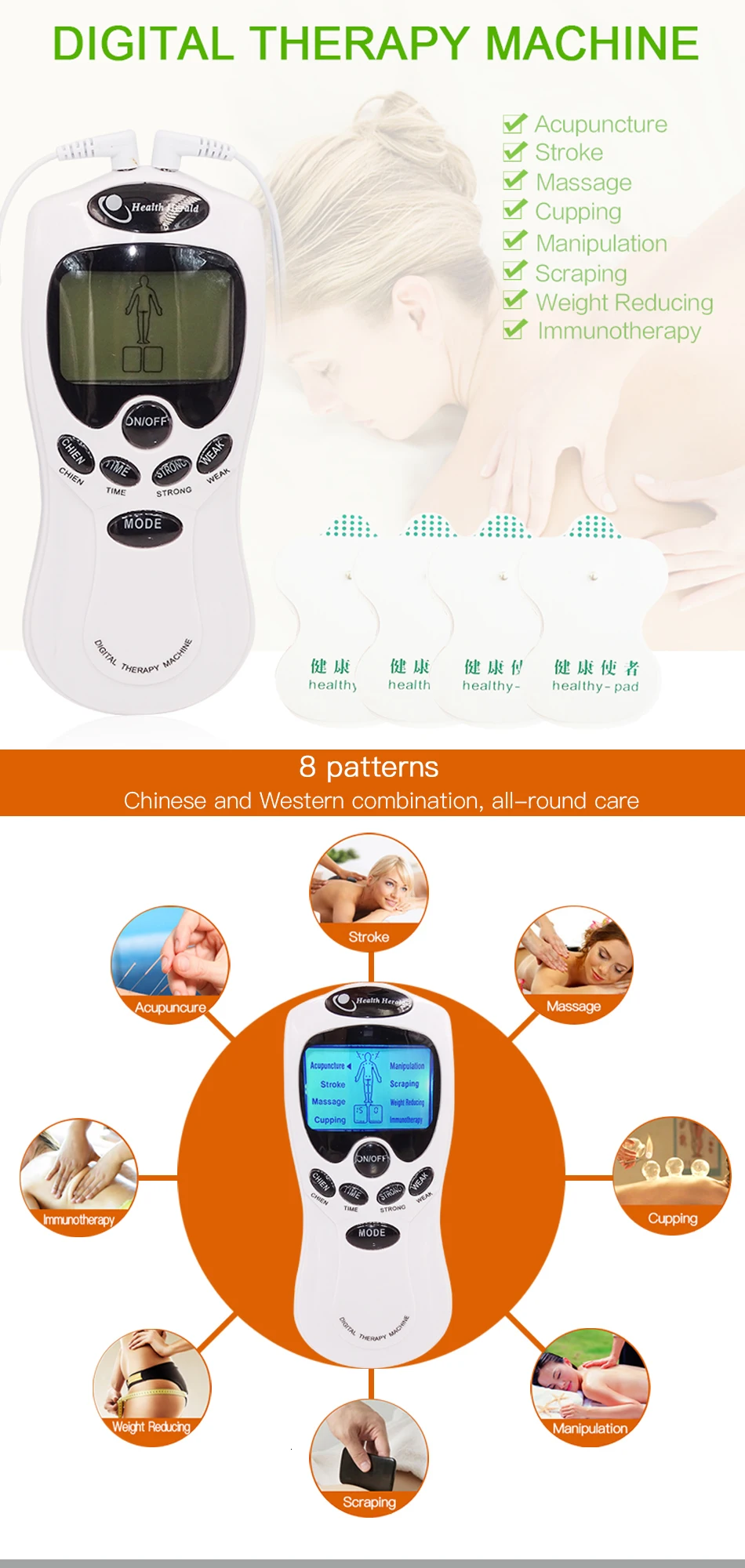 Чудесное сочетание различных импульсных сигналов заставит вас почувствовать истинное ощущение акупунктуры, поглаживания, манипуляции, обрезания, массажа и скраппинга;