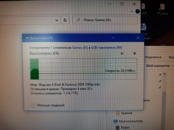Заказывал несколько штук, скорость чтения 160 Мб/с / записи 50 Мб/с.
