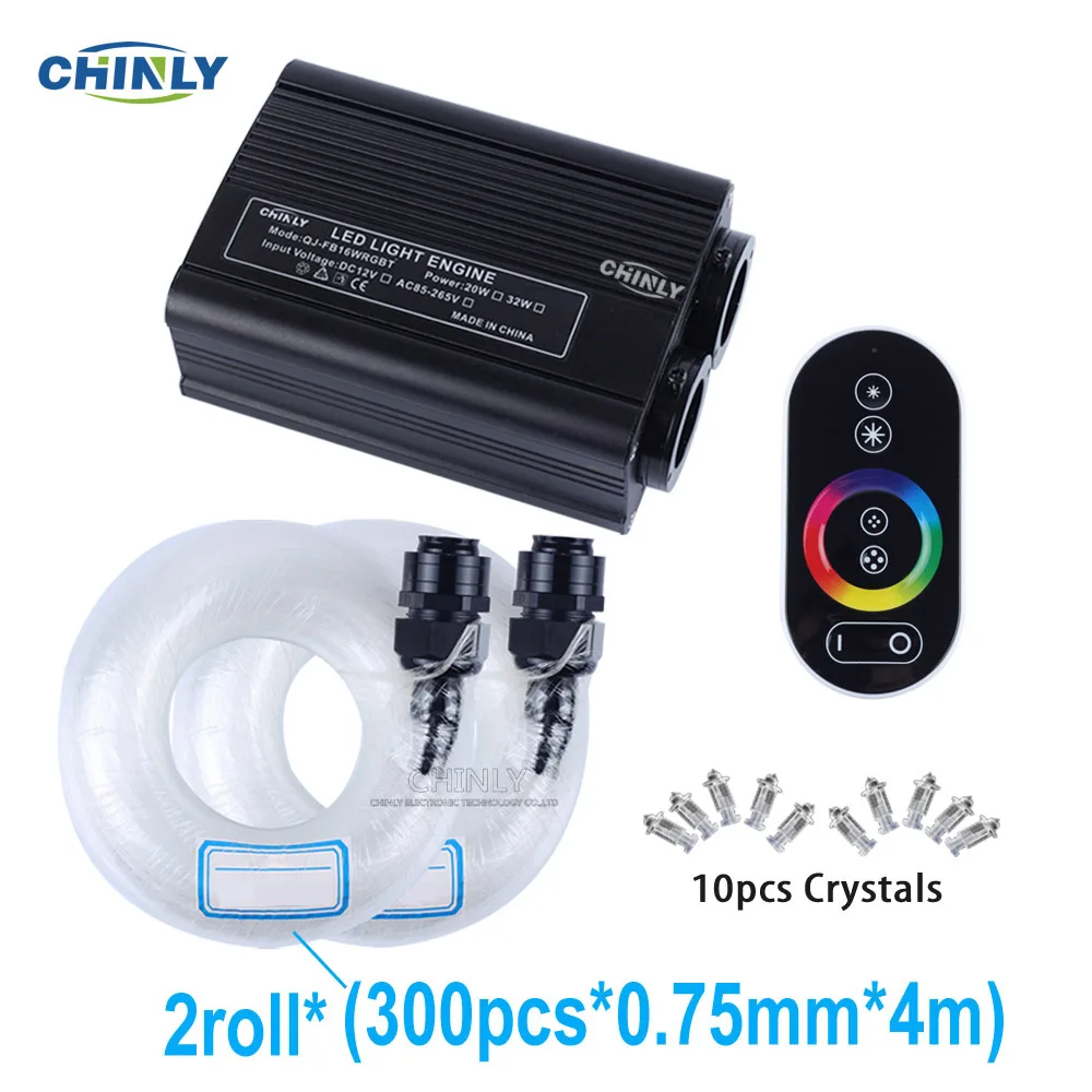 Волоконно-оптический звезда потолочный светильник комплект 2*4 м 0,75 мм 300 шт. оптика волокно + 32 Вт RGBW светильник двигателя RF сенсорный пульт дистанционного управления
