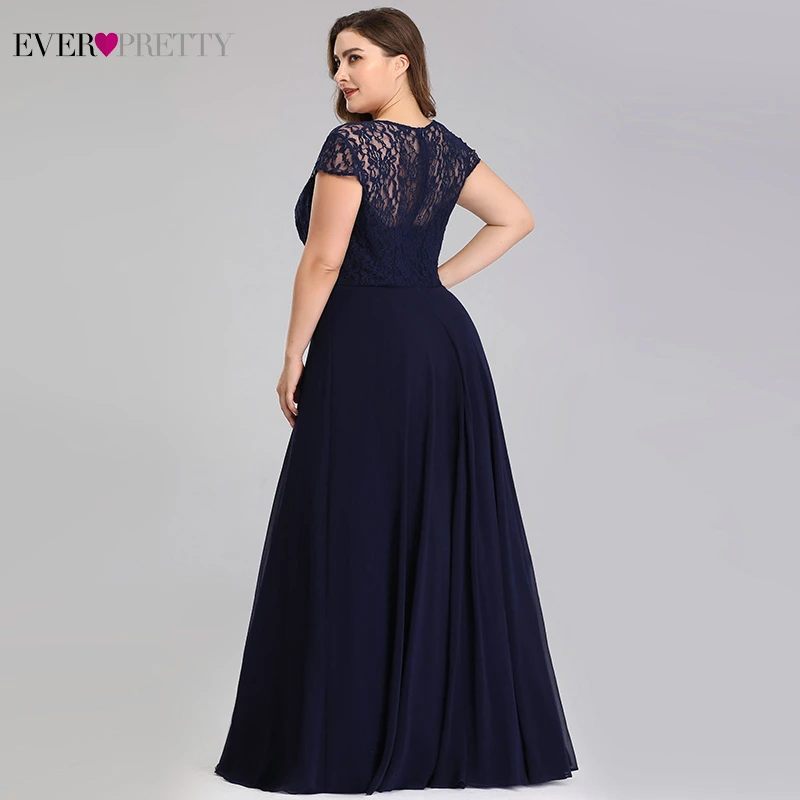 Темно-синие кружевные вечерние платья размера плюс Ever Pretty EP07986NB А-силуэта с рукавом-крылышком из бисера Элегантные вечерние платья Abiye 2020