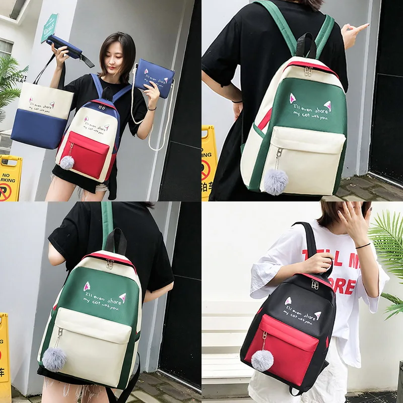 Puimentiua 4 шт.компл., женские школьные рюкзаки, нейлоновая школьная сумка для подростков, девочек, Студенческая книга, сумка для мальчиков, Mochilas Sac A Dos