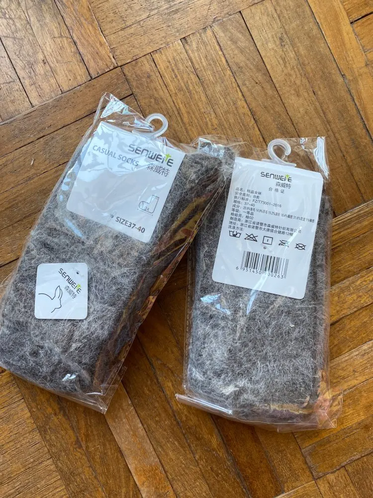 Ставлю 5 звёзд за теплые носочки. Кролик и меринос)), наверняка из Шанхая. У меня шапка из шерсти подобных животных уже есть, один в один! но всё-равно, спасибо!