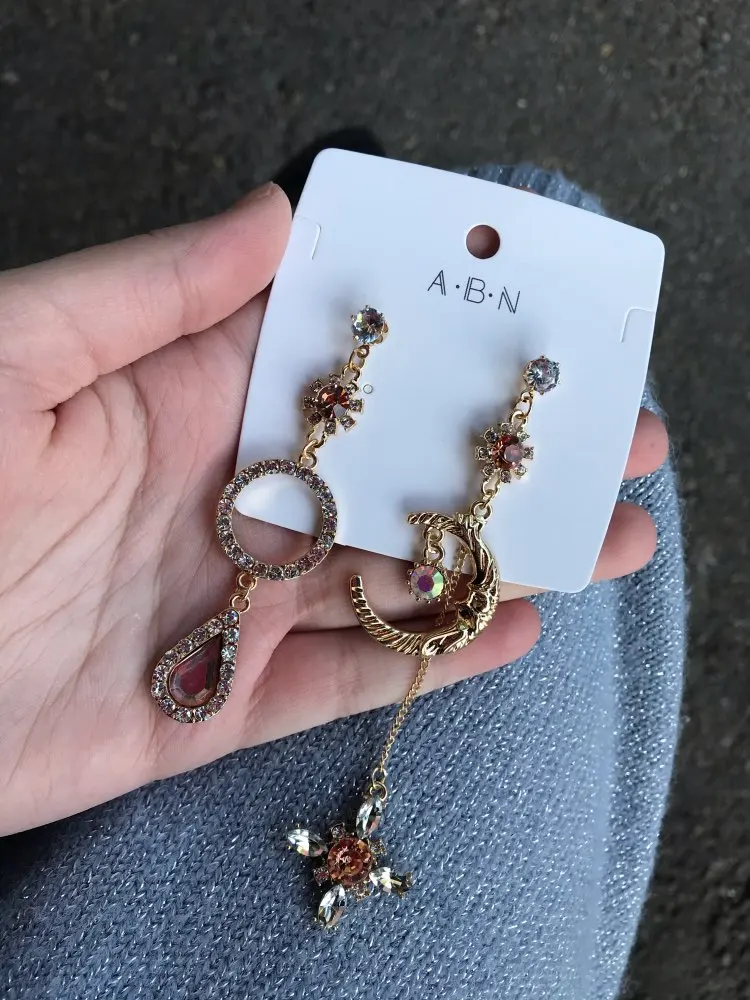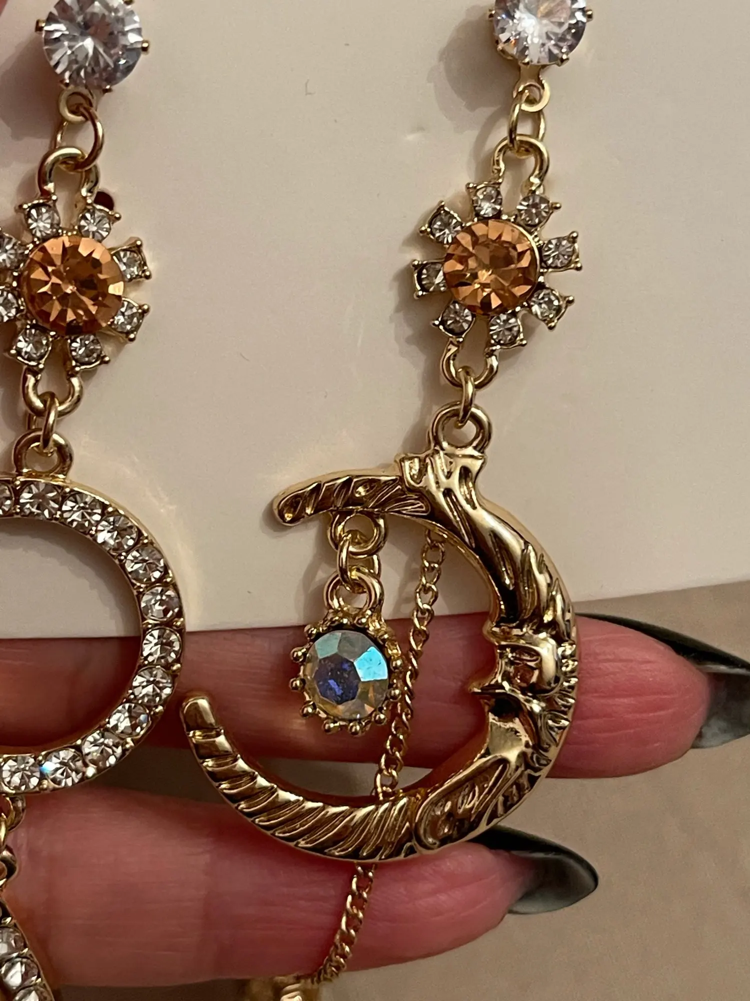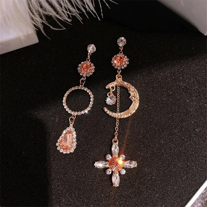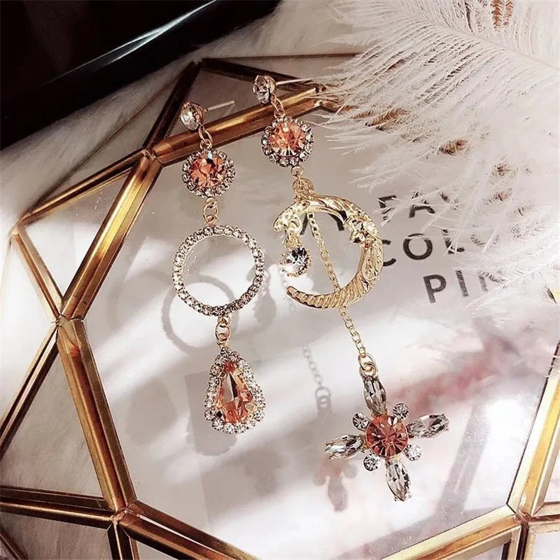 Женские Висячие серьги, из цинкового сплава, с круглыми кристаллами, в стиле барокко, с Луной, 2019