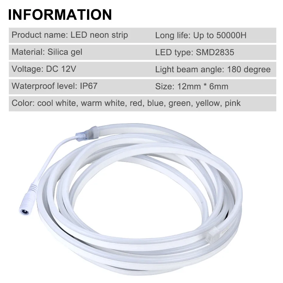 Гибкая светодиодная неоновая лента IP67, Светодиодная лента 12 В 28...