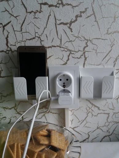 Нормальный держатель для смартфона у розетки, во время зарядки. Единственное, что плохо - смартфон в нормальном (книжкой) чехле не влазит - толстоват.