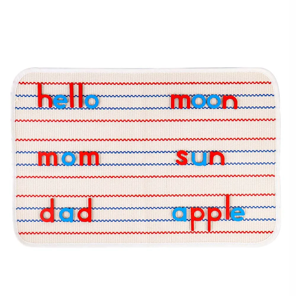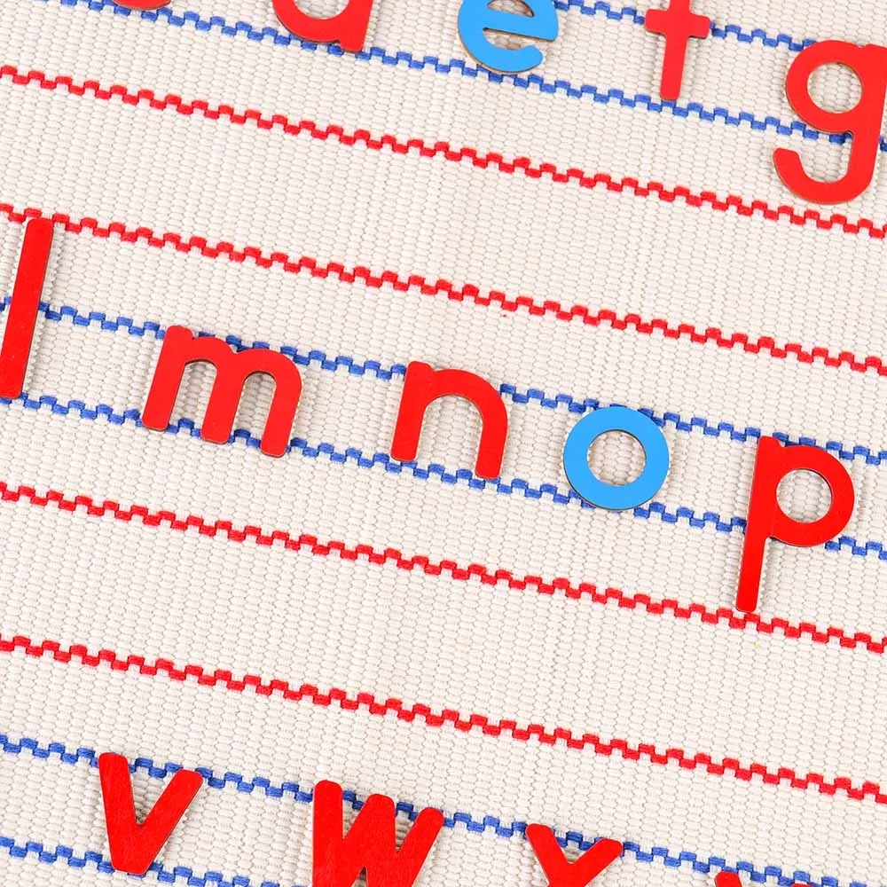 Деревянный подвижный алфавит Монтессори (красный и синий) с ковриком для маленьких подвижных алфавитов