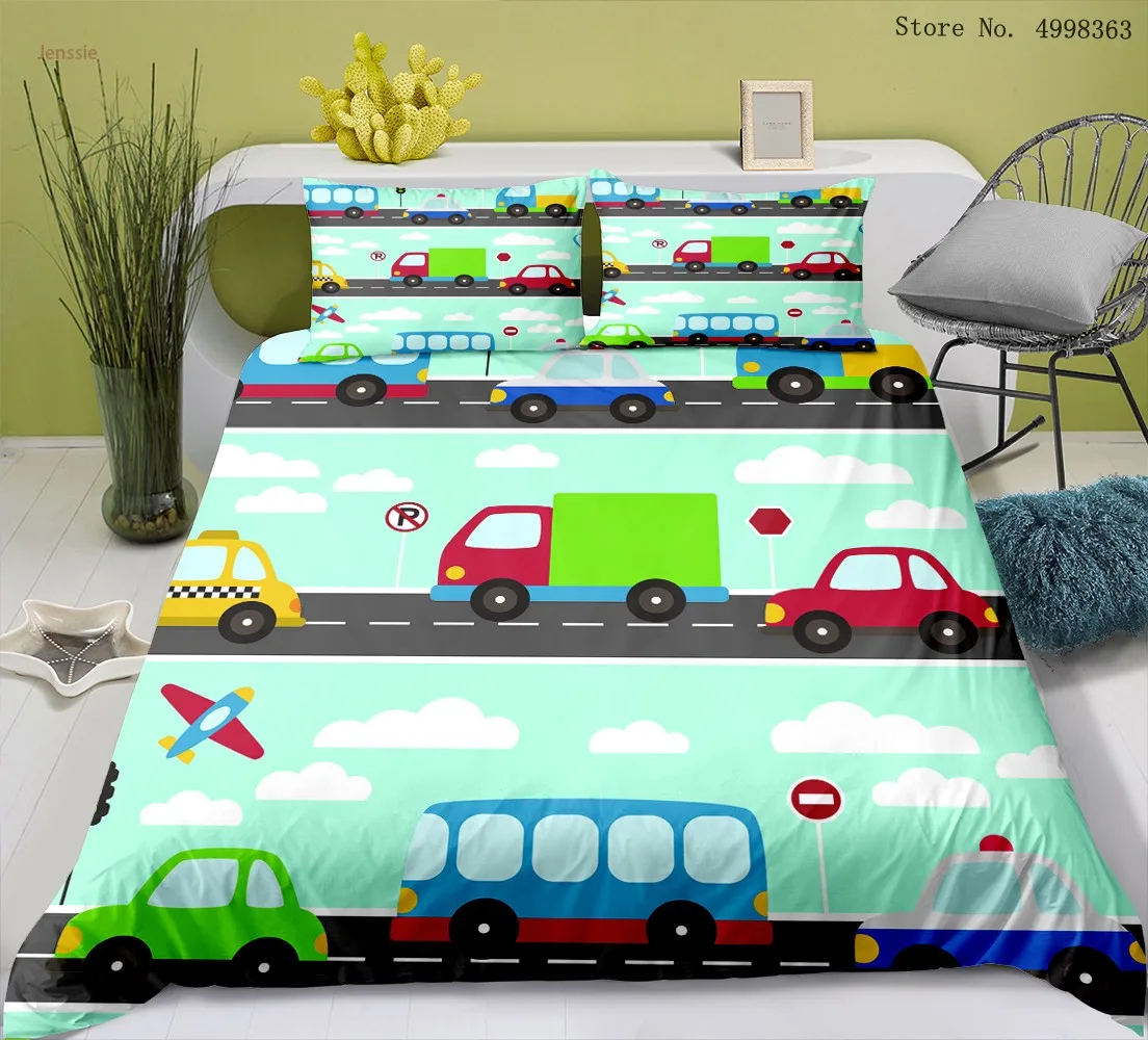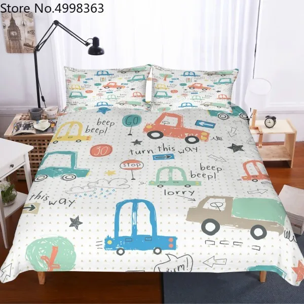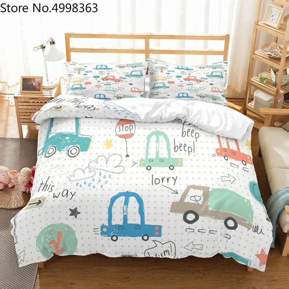 Комплект постельного белья с мультяшным автомобилем, детский пододеяльник с машинками, 3D комплект постельного белья с наволочкой, рождественский подарок, домашний декор, постельное белье