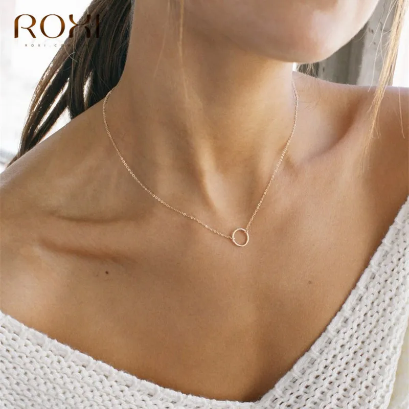 Ожерелье женское из серебра 925 пробы, с круглой подвеской