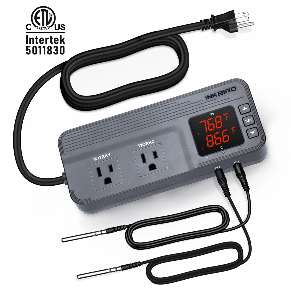 Контроллер температуры и влажности Inkbird 15A 1800 Вт, проводной термостат с двухступенчатой розеткой переменного тока и 12-кратным временем