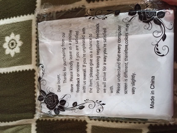 Всё соответсвует описанию,товаром очень довольна,рисунок очень четкий смотрится очень натурально .До Алматы товар шёл 40 дней,радует что пришёл до НГ.Хорошо выпрямляется с помощью утюга на режими для деликатной ткани 5+++