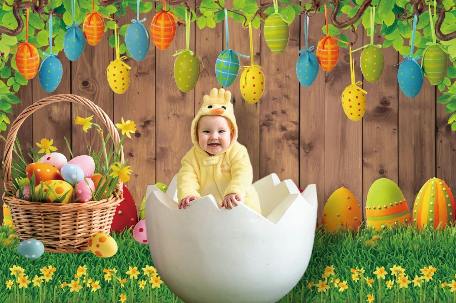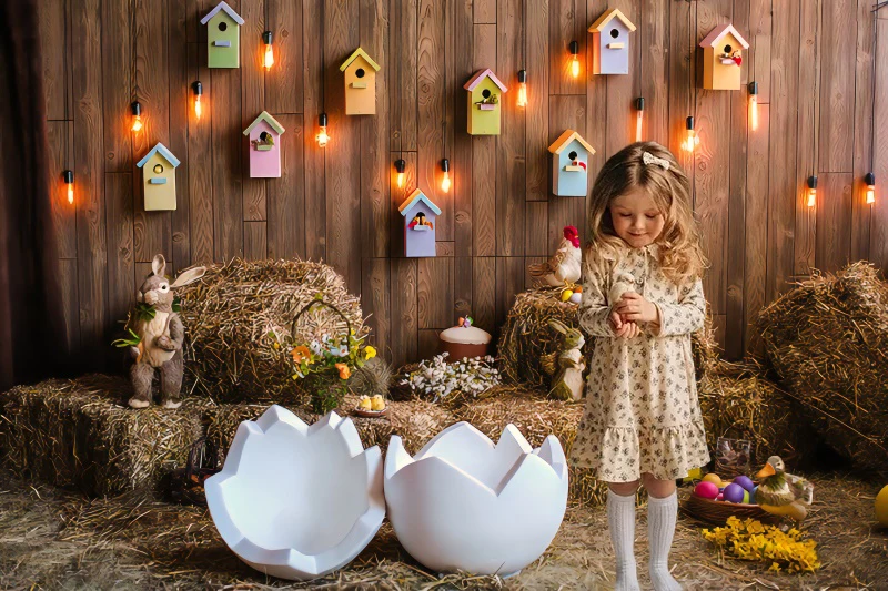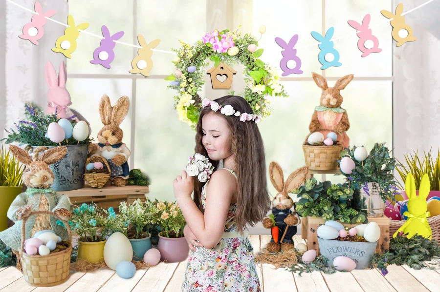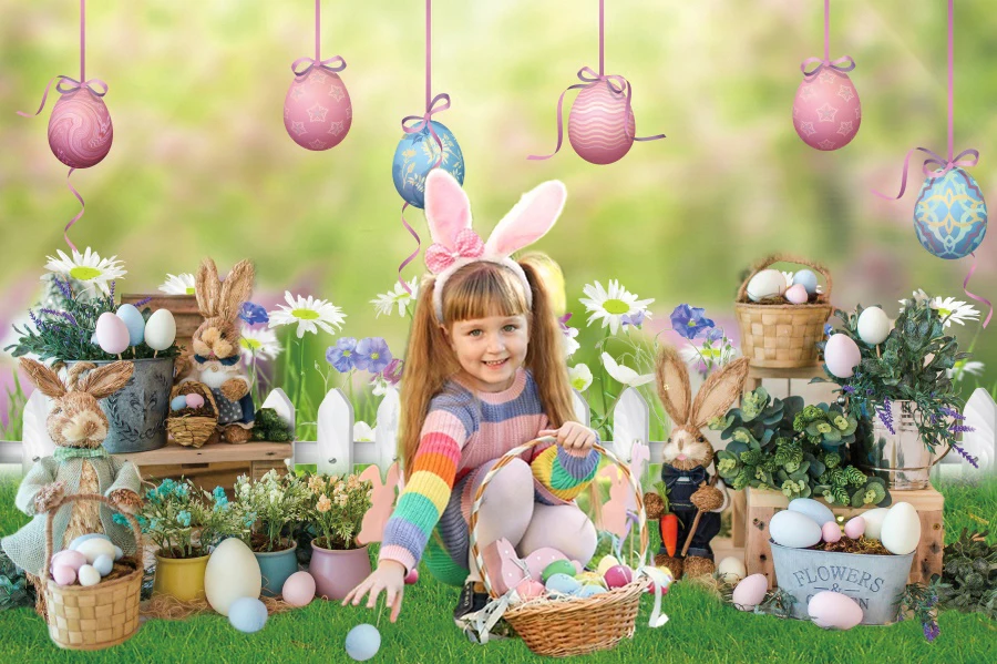 Фон для фотосъемки с пасхальвечерние яйцами и кроликом