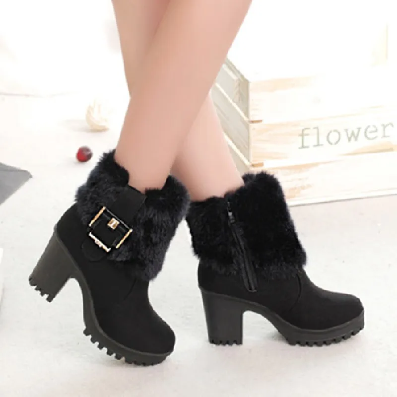 Женская зимняя обувь на квадратном каблуке; Классические Теплые женские ботинки на меху с пряжкой; Дизайнерские черные ботильоны на платформе и высоком каблуке; VT310