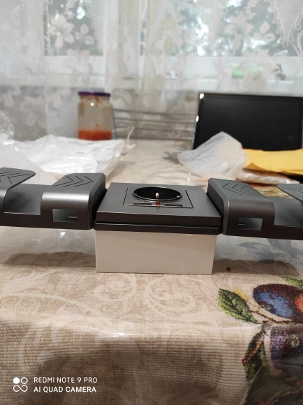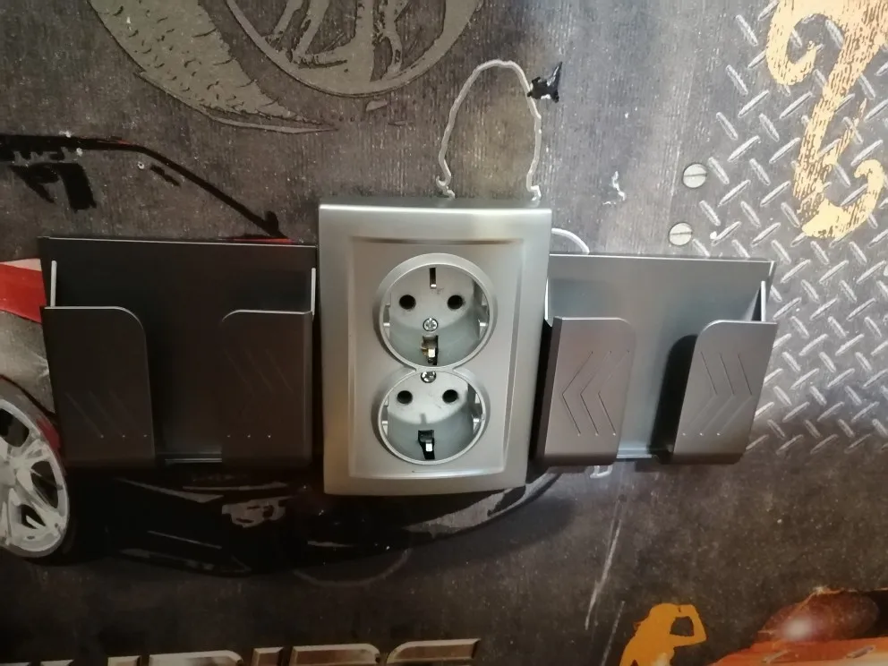 Как в описании. Рама плохо вписывается в стандарт SIMON, вы должны удалить упаковку. Я думаю, что было бы лучше купить держатель телефона, просто приклеить его или завинтить рядом с вилкой.