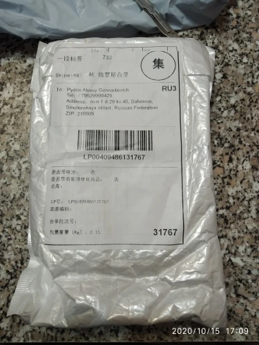 Страна: EE Color: Gray-2 Доставка: China Post Ordinary Small Packet Plus 21.01.2021