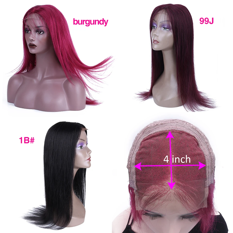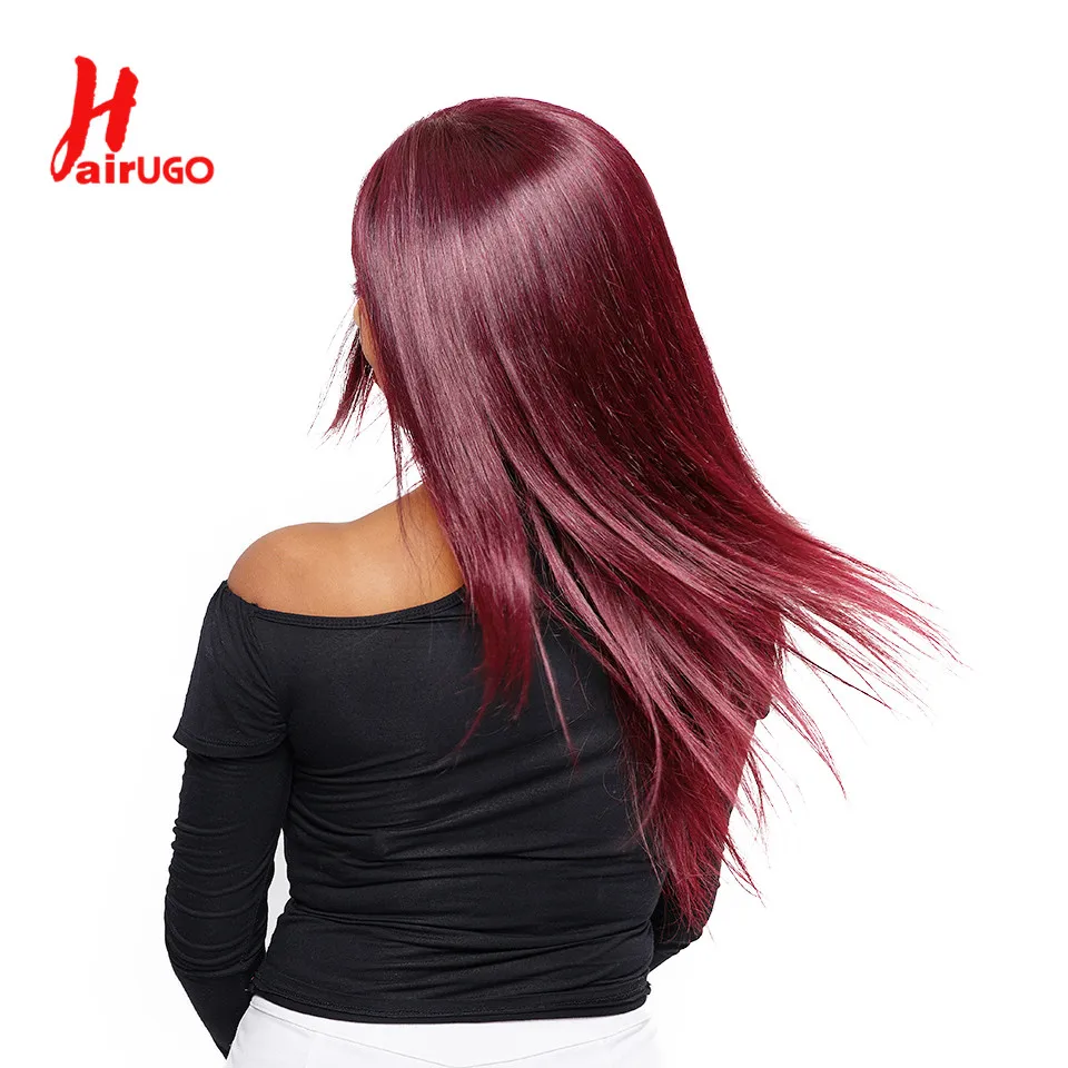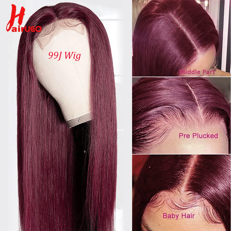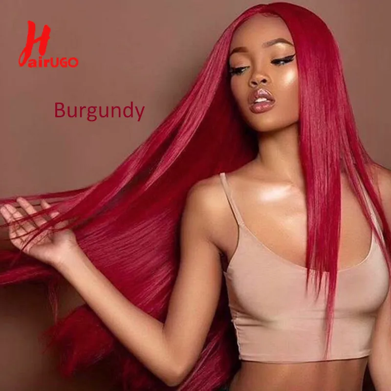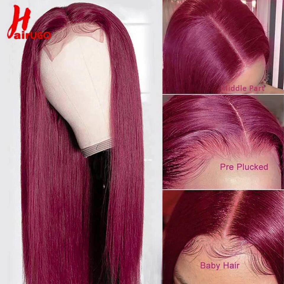 Парики HairUGo бордовые красные прямые из натуральных волос 99J 4x4, парики с закрытием, перуанские прямые выщипанные цветные прямые парики Remy для женщин 180%