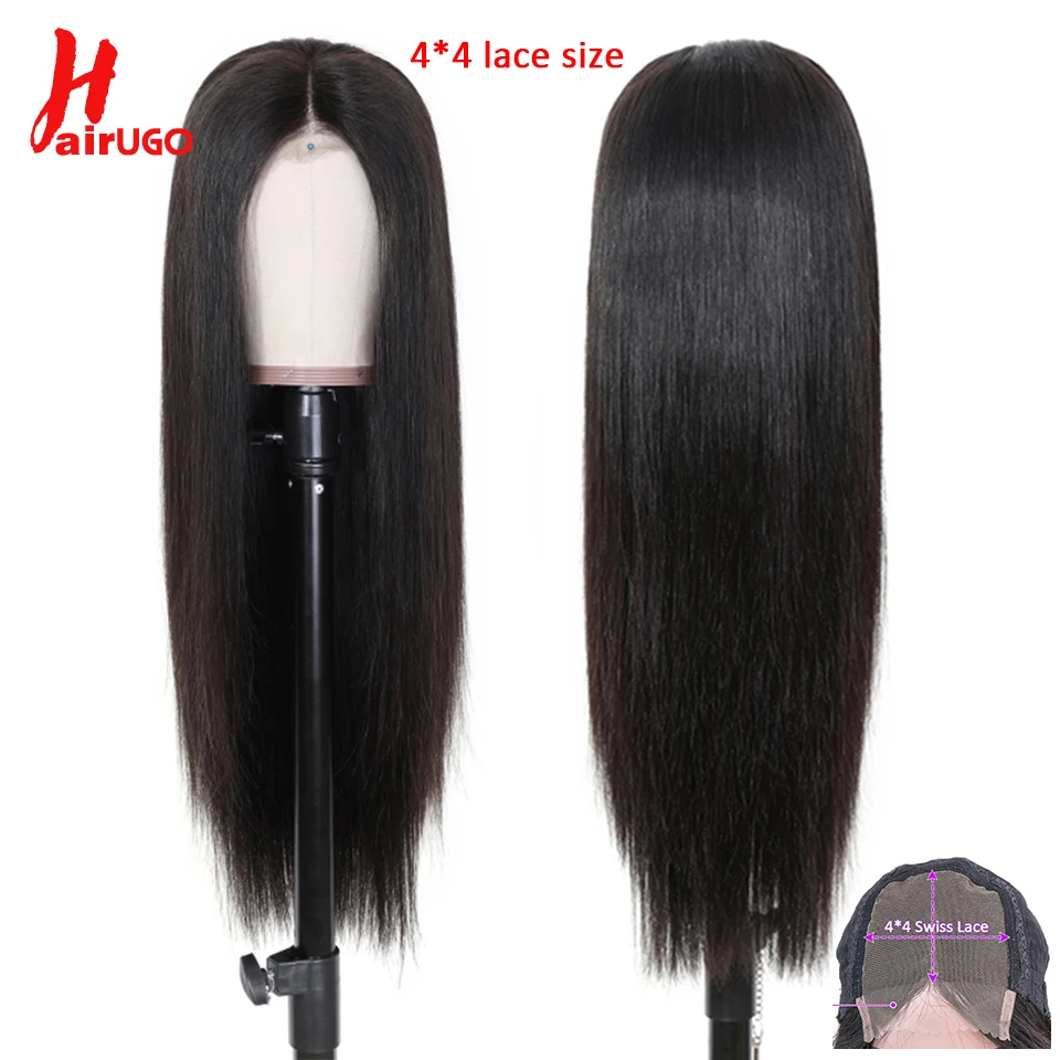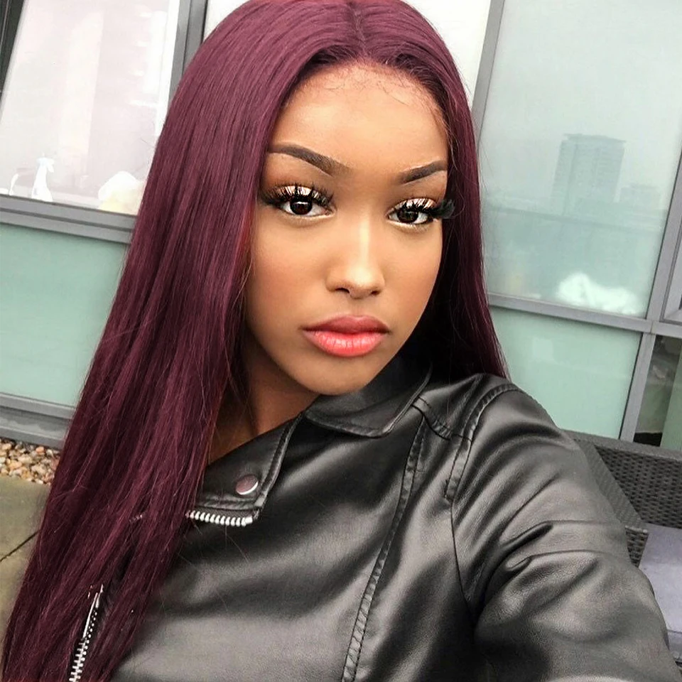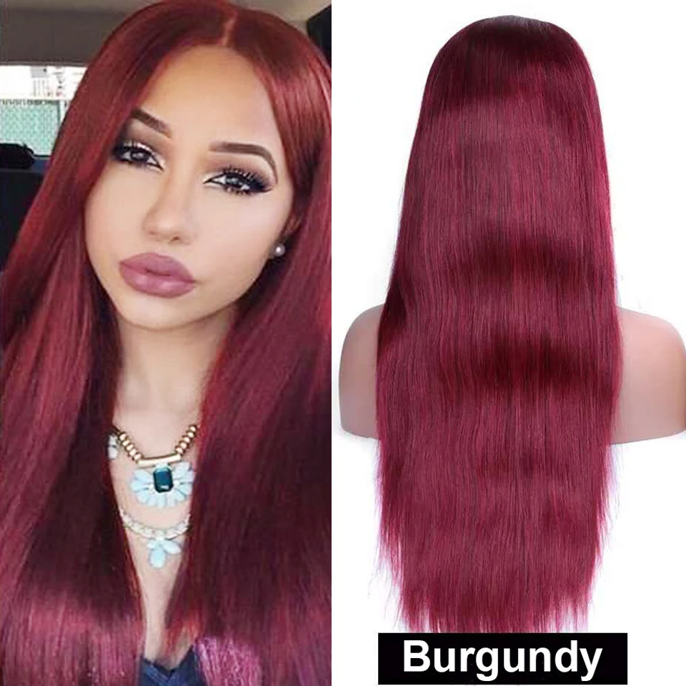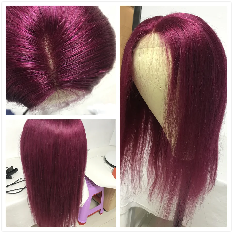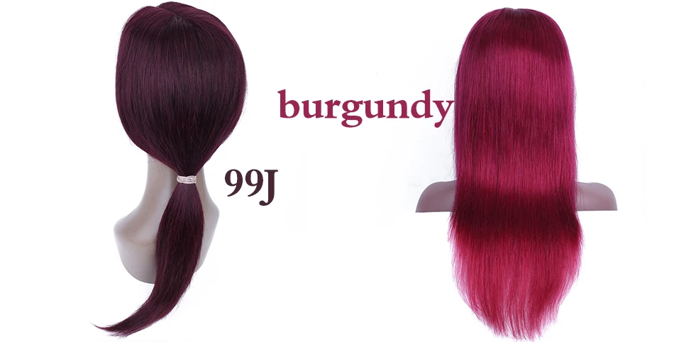Парики HairUGo бордовые красные прямые из натуральных волос 99J 4x4, парики с закрытием, перуанские прямые выщипанные цветные прямые парики Remy для женщин 180%