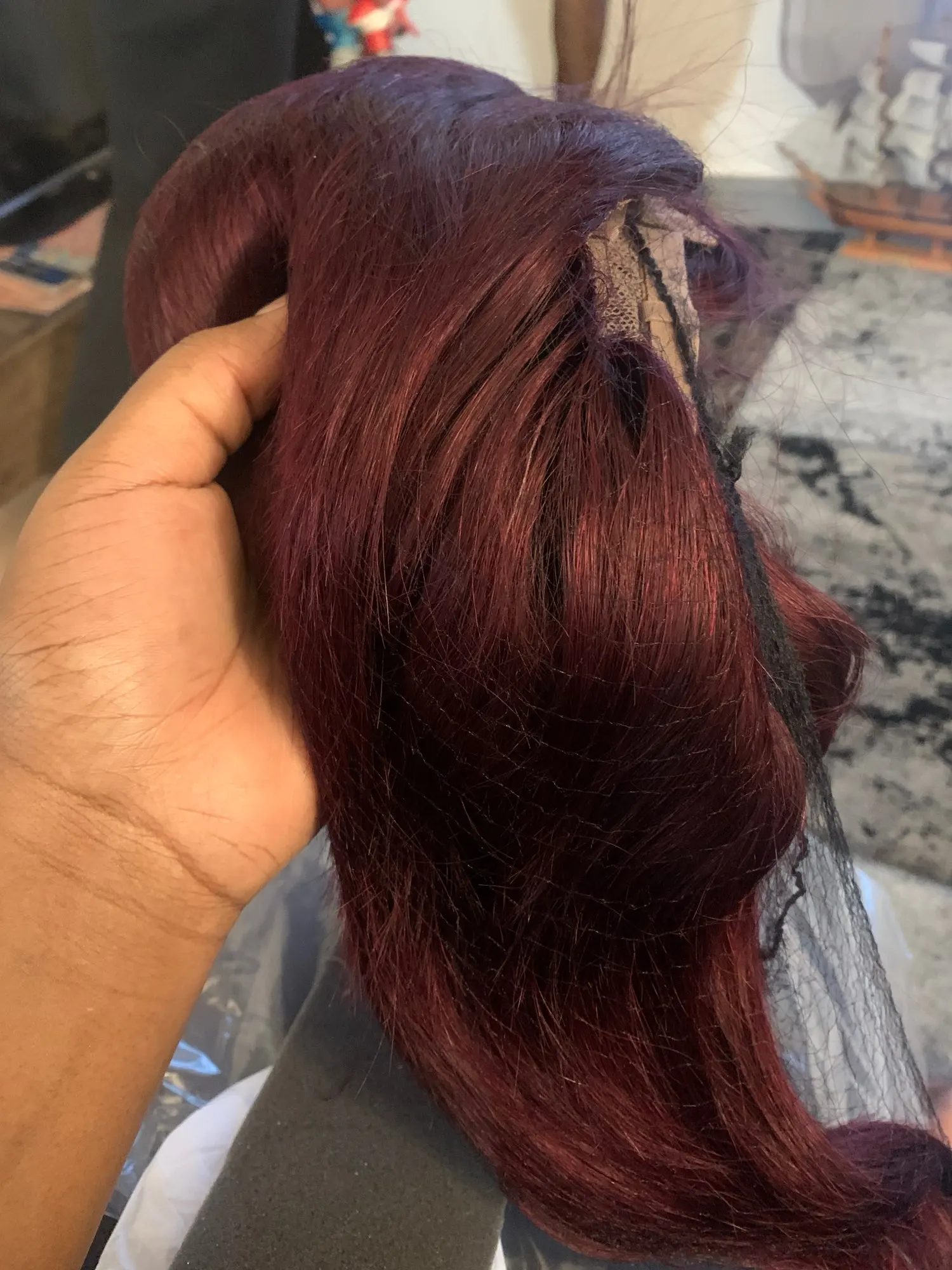 Страна: US Hair Color: BURG Density: 4x4 Lace Wig Stretched Length: 20inches Ships From: China Доставка: Fedex IP 18.01.2021