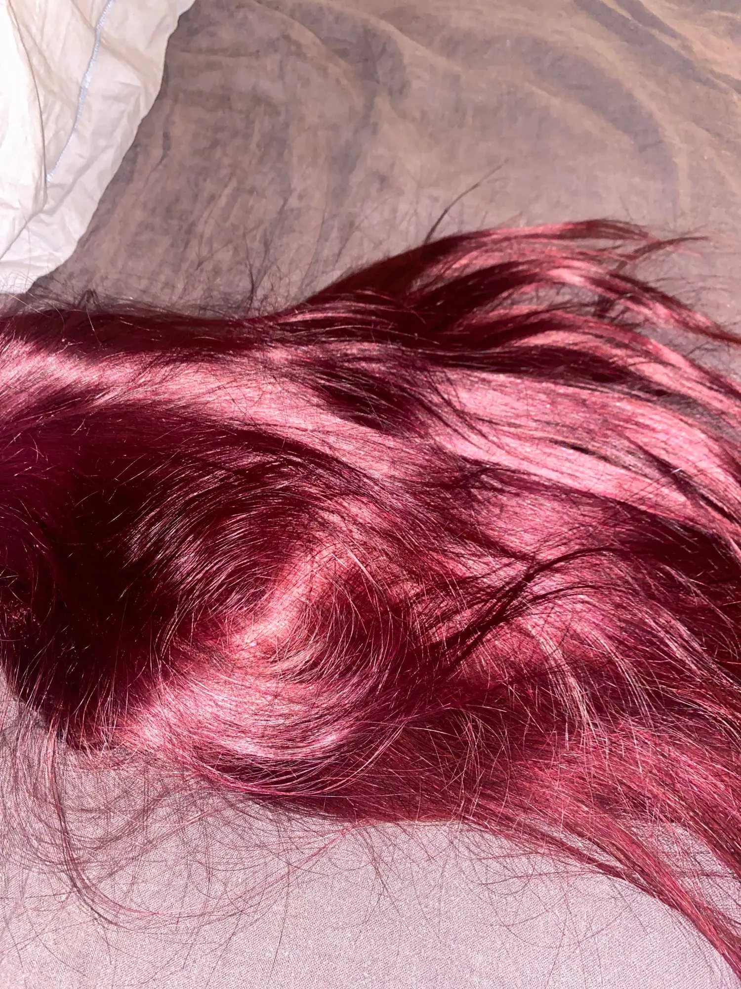 Пришел быстро .. Не линяет много. Намного ярче, чем я ожидала, но выглядит идеально с моим оттенком кожи. Буду заказывать снова у этого продавца