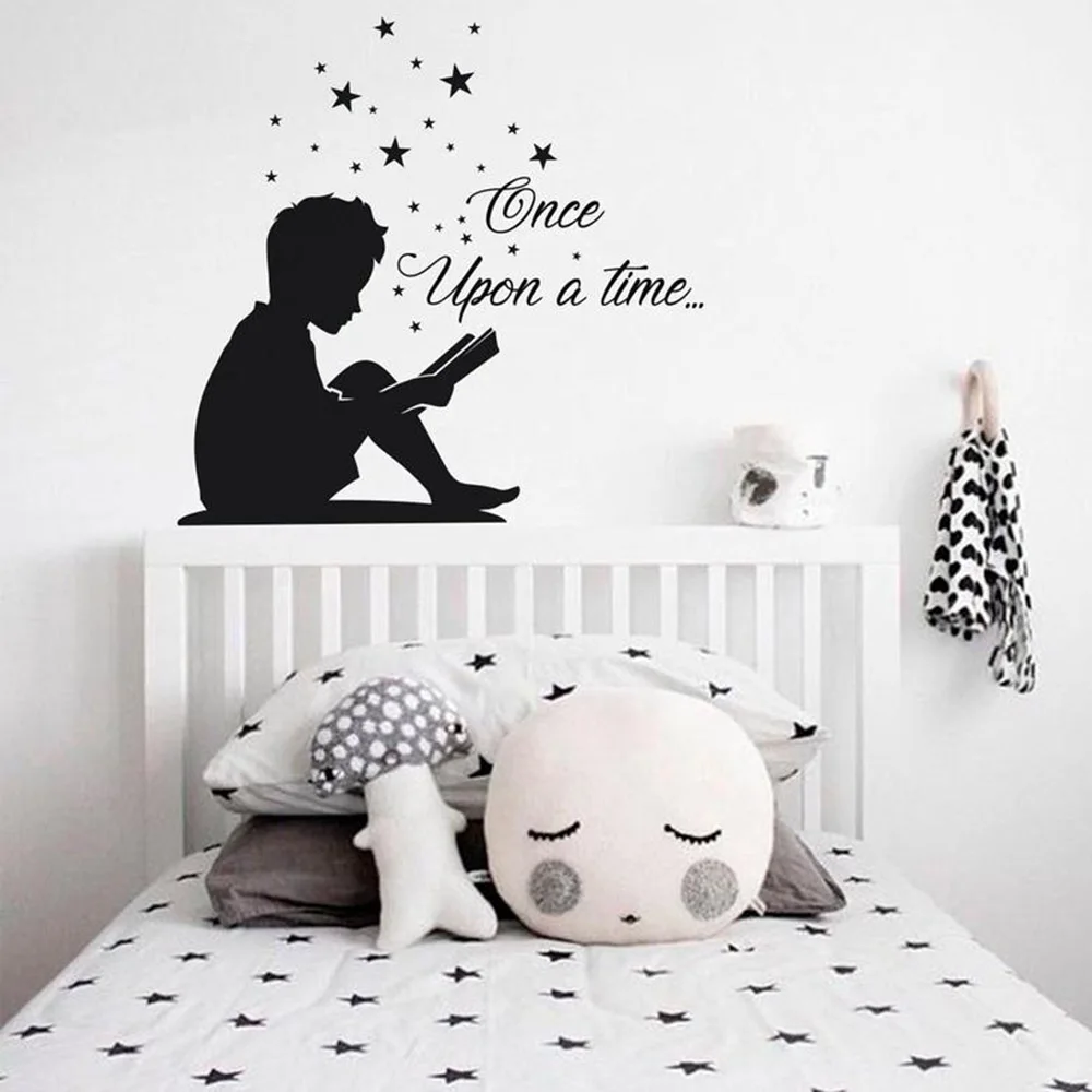 Виниловые наклейки на стену для чтения мальчика Once Upon a time, наклейки с цитатами для влюбленных, наклейки для книг, углов и школы, украшение для дома, C022
