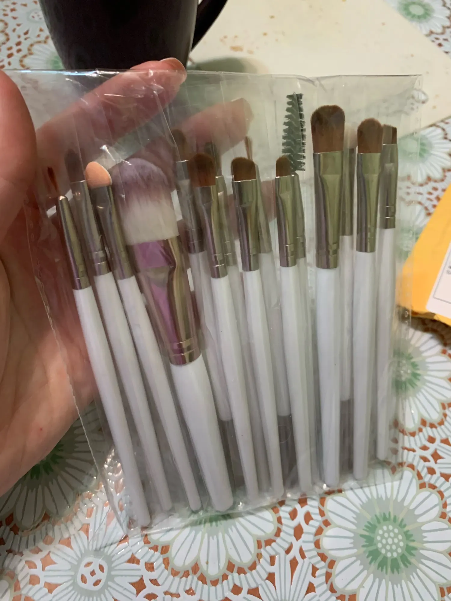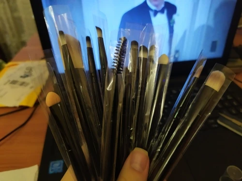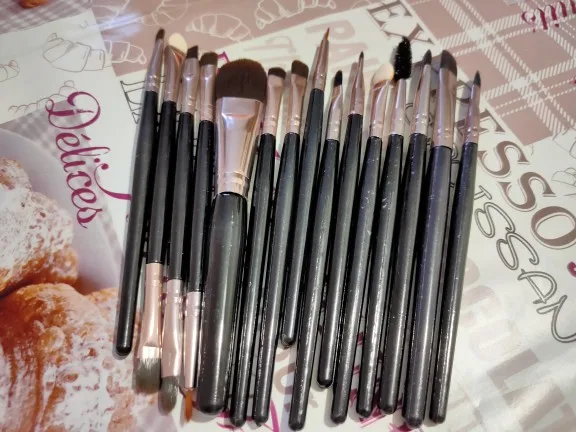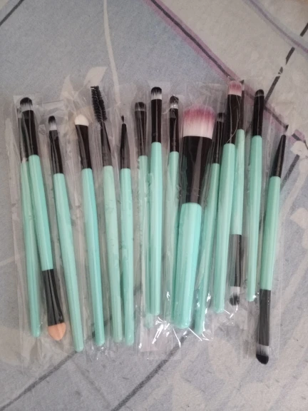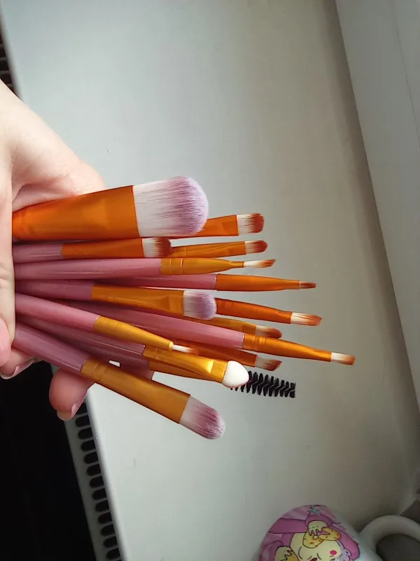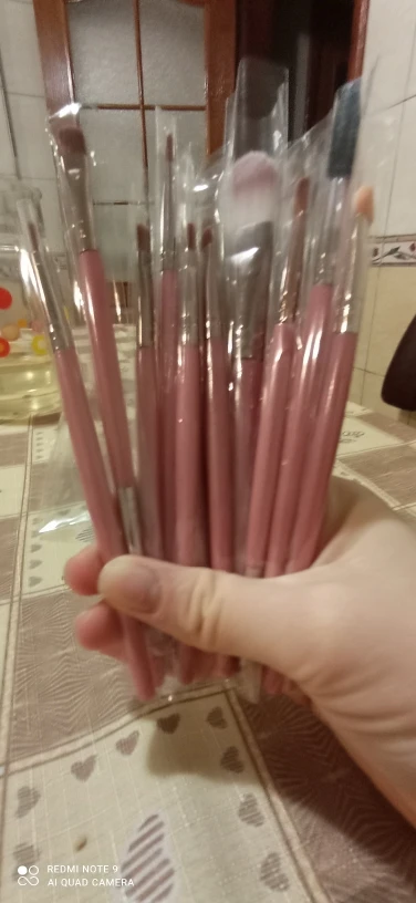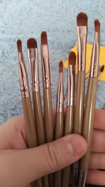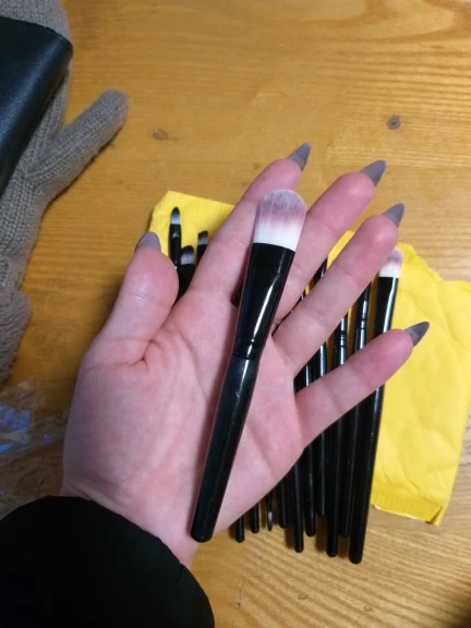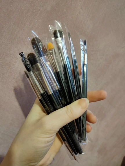 Товар в хорошем состоянии. Немного меньше размером, чем ожидала, но это не принципиально. Кисти слегка жестковаты, но лично для меня это плюс. Все пятнадцать на месте (упакованы были хорошо, а фото сделано после упаковки, так что не бойтесь. С продавцом не общалась ♀️