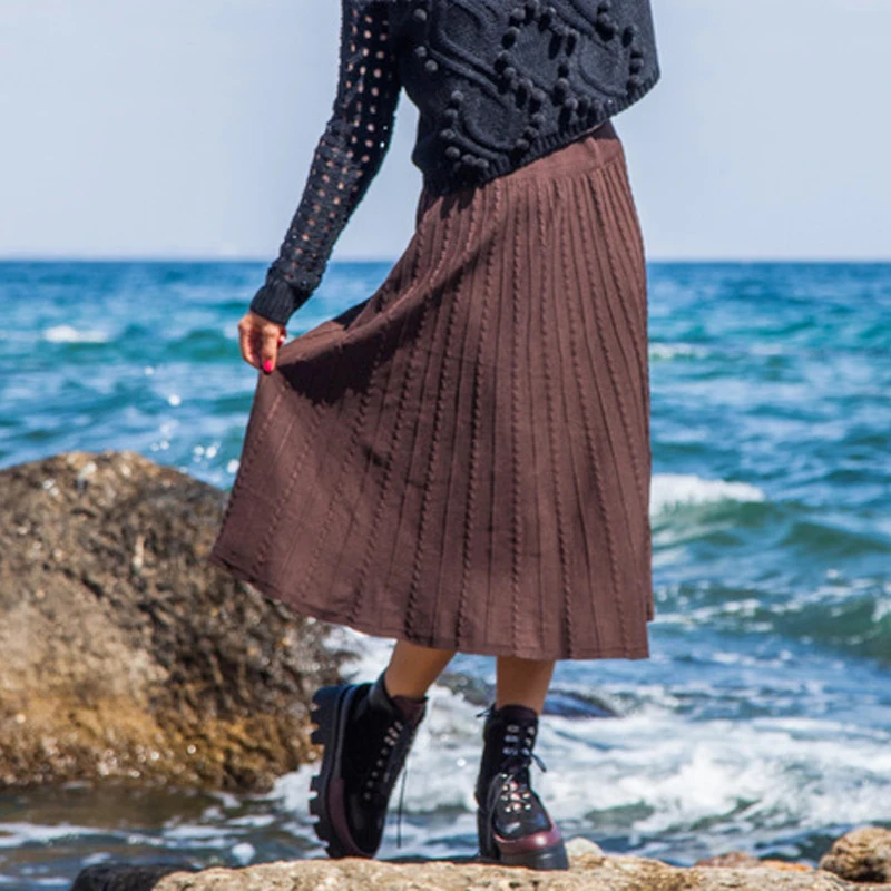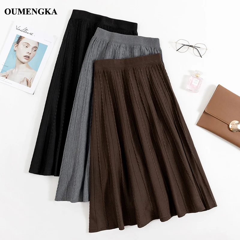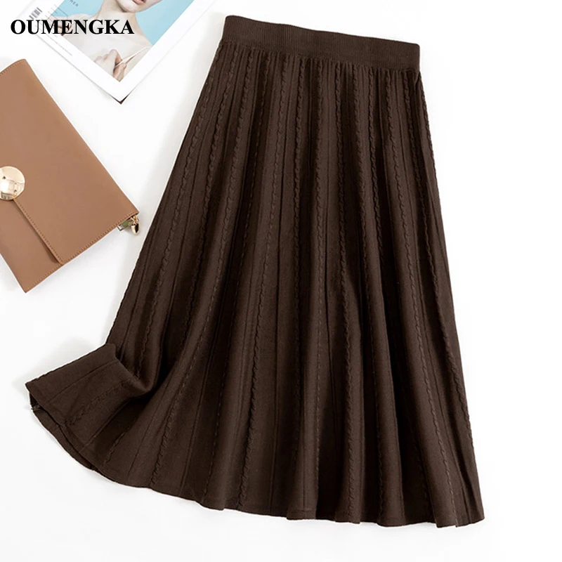 OUMENGKA женские вязаные юбки мода 2019 Высокая талия юбка Женская Осень Зима миди юбка эластичная талия а линия женские юбки