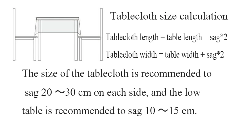 3. Размер рекомендуется провисать 20-30 см на каждой стороне скатерти, 10-15 см на каждой стороне низкого стола, решить для себя.