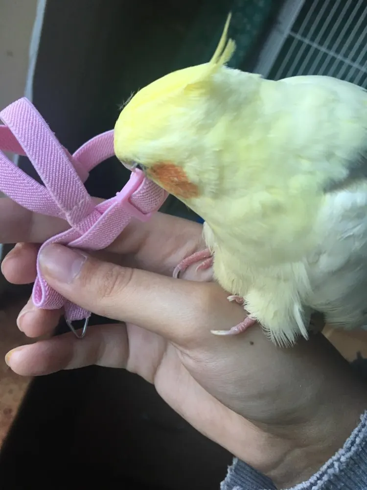 I have few different leashes. the other makes are silk straps, very thin, long. however this one is elastic straps and I think little small for the cockatiel. i put this on my cockatiel neck but couldn't fit it through the wings. one thing I must say this is very good quality very and made very well.