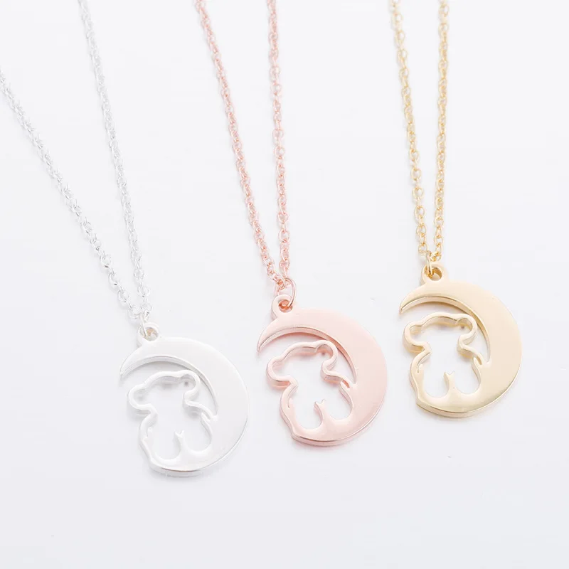Ожерелье из нержавеющей стали с лунным медведем, ювелирные изделия, женские модные подвески в виде животных, ожерелье, аксессуары для вечеринки, подарок для мамы и медведя