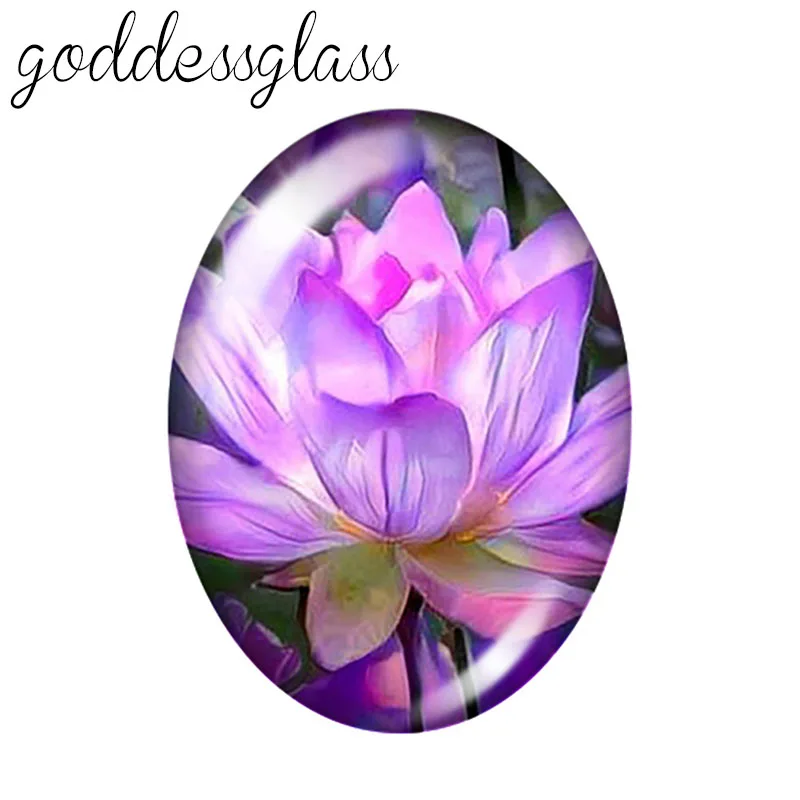 TB0215 картины маслом Лотос Маргаритка 10 шт. смешанные 13x1 8 мм18x2 5 мм30x40 мм овальные фото стекло кабошон демонстрация плоская задняя сторона