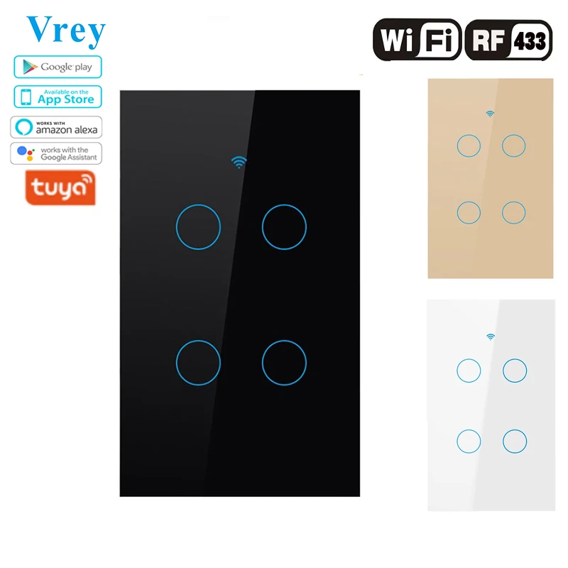 Добро пожаловать в Официальный магазин vrey Беспроводной настенный светильник smart touch switch Стандартные Особенности и характеристики США: Ключевые особенности: • Дистанционное управление через Wi-Fi: включение/выключение света из любого места • Поддержка приложения: Smart Life & TUYA (Бесплатное мобильное приложение для iOS и Android) • Совместимость: работает с Amazon Alexa, Google Home • Независимое управление: Управляйте каждой бандой отдельно • Состояние синхронизации; Состояние устройства в режиме реального времени, предоставленное в приложении • Время: Установите таймеры обратного отсчета, чтобы включить/выключить в указанное время • Удаленное расстояние: 20 м • РЧ-частота: 433,92 МГц • Стандарт беспроводной связи: 802,11 b/g/n • Механизм защиты: WPA-PSK/WPA2-PSK • Материал: огнестойкий материал из поликарбоната, панель из закаленного стекла Размер: 120*72*36 мм Примечания: 1) Этот переключатель должен питаться от прямых и нейтральных проводов. В некоторых домах может не быть нейтрального провода на настенном переключателе. Пожалуйста, проверьте перед размещением заказа. 2) Данный Коммутатор поддерживает пульт дистанционного управления RF433. Блок дистанционного управления необходимо приобрести отдельно Содержимое упаковки: -Сенсорный выключатель-1 шт. -2 винта -1 x Руководство пользователя