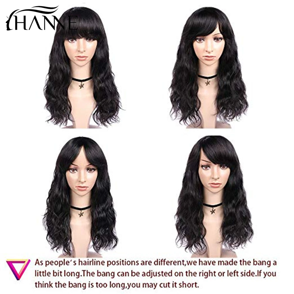 Искусственные человеческие волосы 100%, натуральные волнистые парики с челкой, бразильские человеческие волосы, парики натурального черного цвета 12-18 дюймов