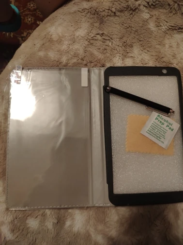 Он прибыл защищен, это флип-кейс, который защищает планшет и позволяет ему наклоняться. Чехол удерживает планшет, а в уголке ТПУ не держится полностью, но не падает. Снаружи есть кожаный чехол, прикрепленный к ТПУ. Кроме того, он поставляется с защитной пленкой и базовым стилусом. Я рекомендую товар и продавцу