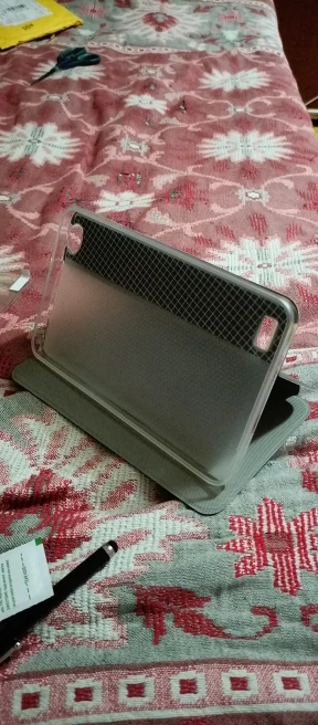 Идеальный чехол. На лицевой стороне присутствует логотип, что в свою очередь соответствует бренду планшета. Имеется непонятный запах, но после "хим." обработки запах немного убавился.