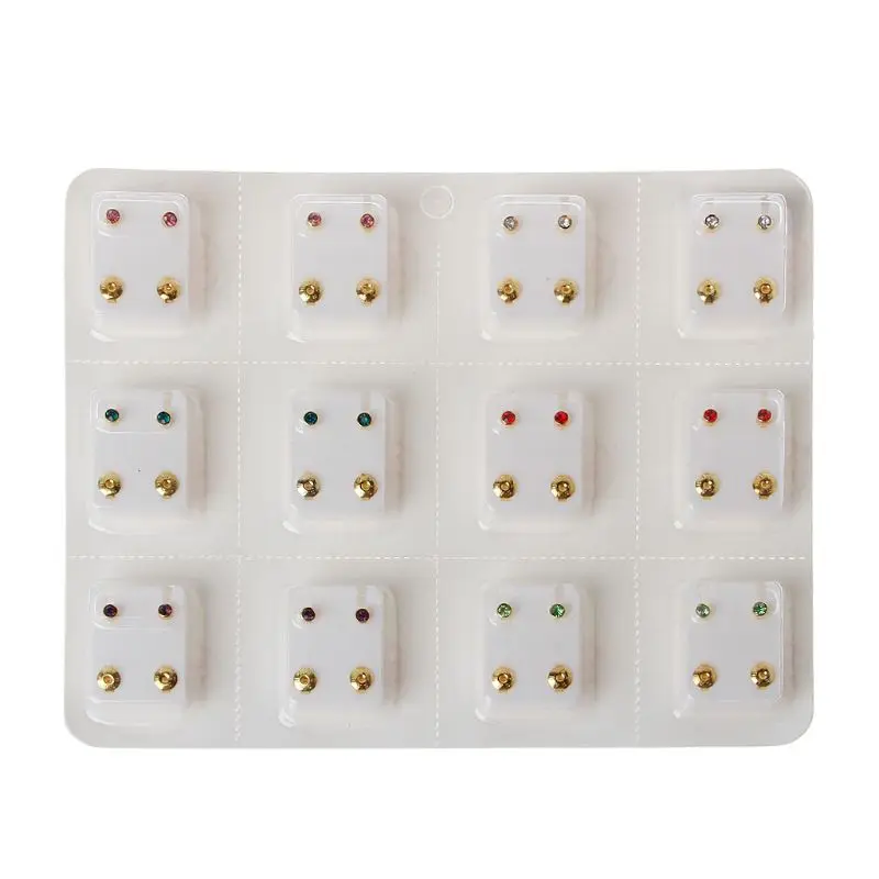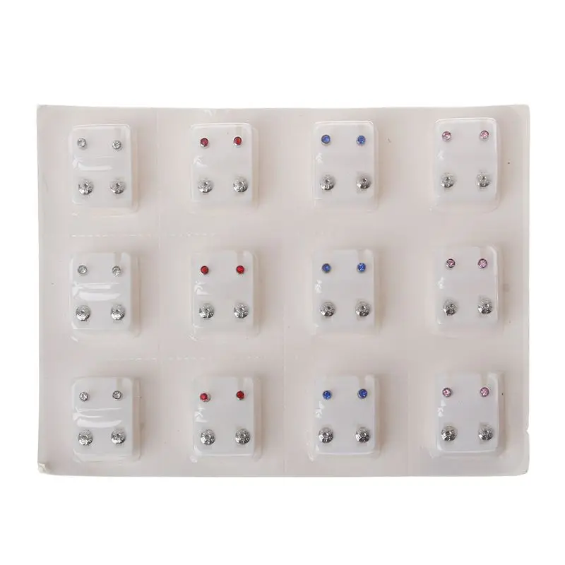12 пар Mini CZ Кристаллы шпильки для пирсинга серьги набор гипоаллергенных ювелирных изделий