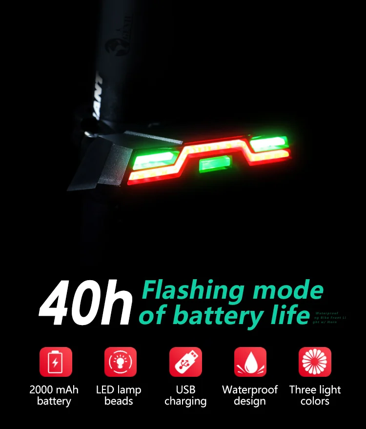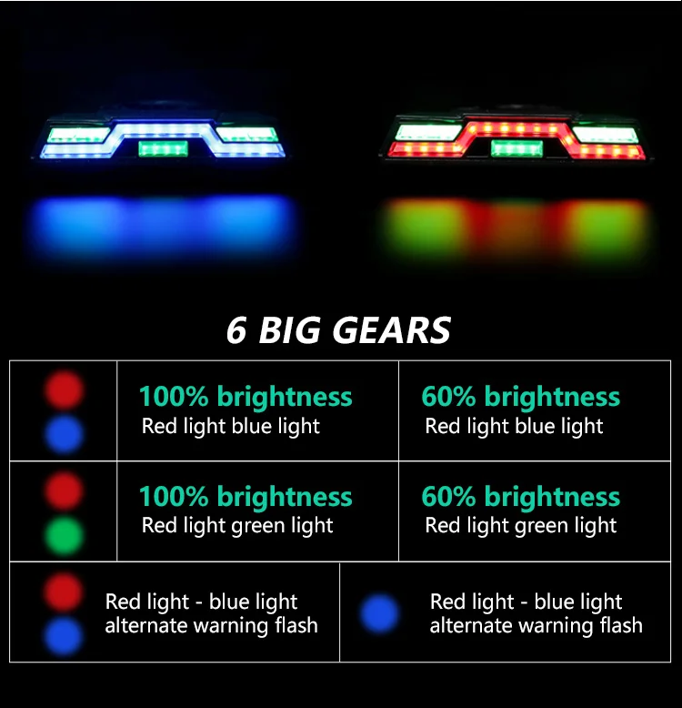 Задсветильник светильник велосипедный, водонепроницаемый, Предупреждение цвета, с зарядкой от USB
