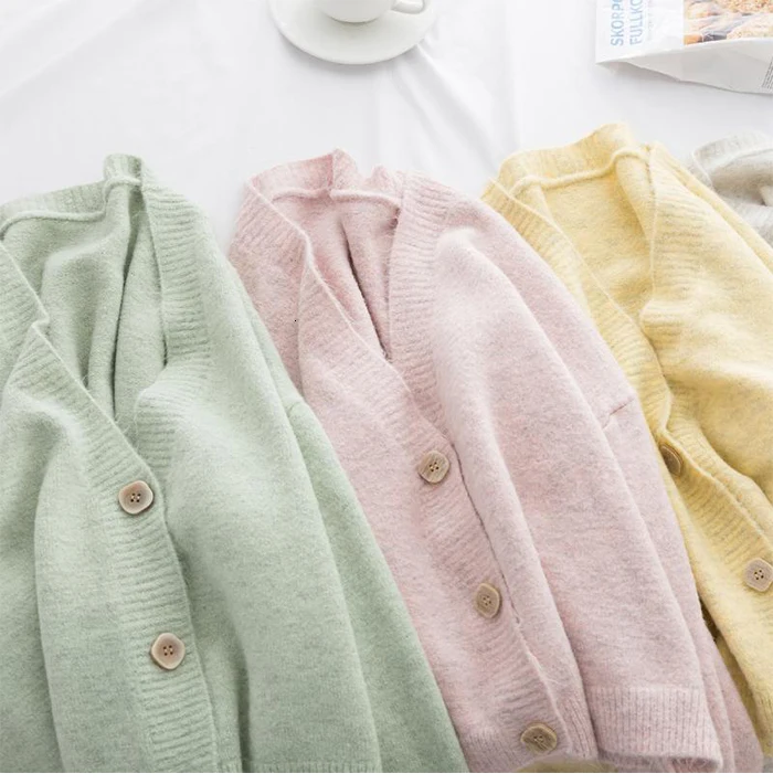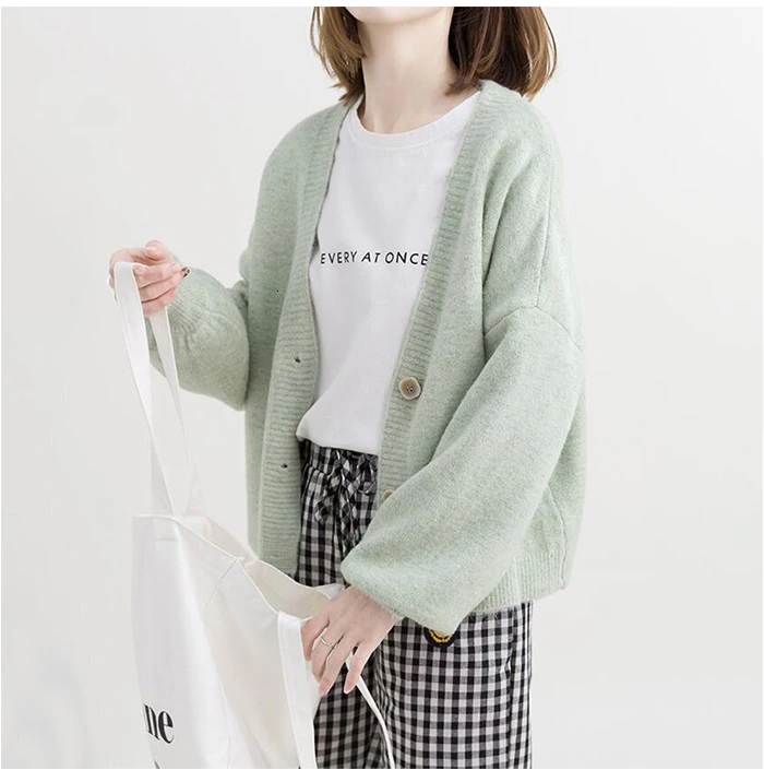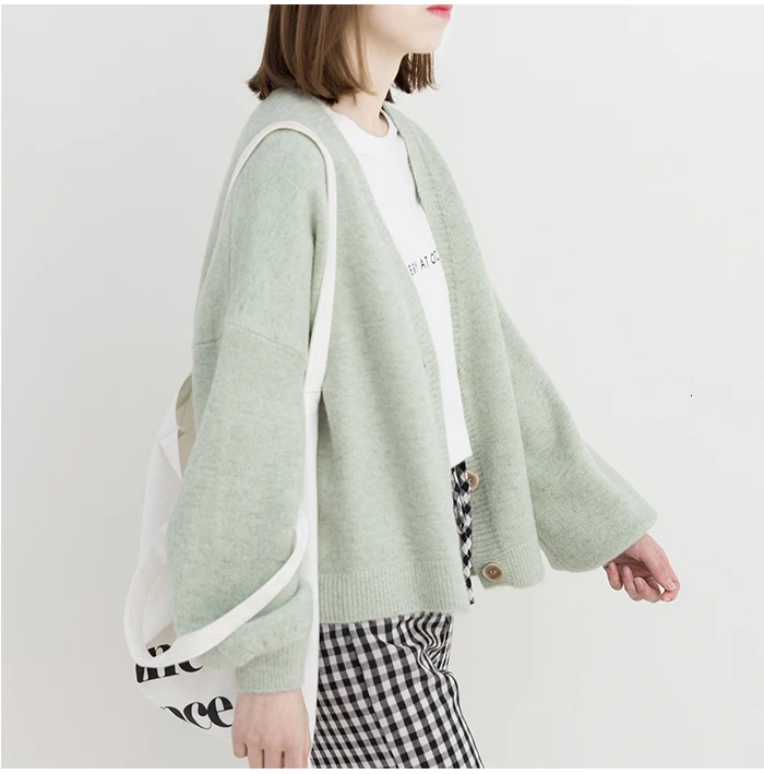 Женский короткий кардиган PEONFLY, зелено-желтый однобортный Свободный кардиган с длинным рукавом, вязаная куртка, осень 2019