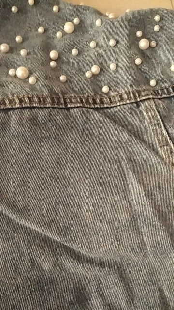 Женская джинсовая куртка с жемчужными бусинами, с длинным рукавом